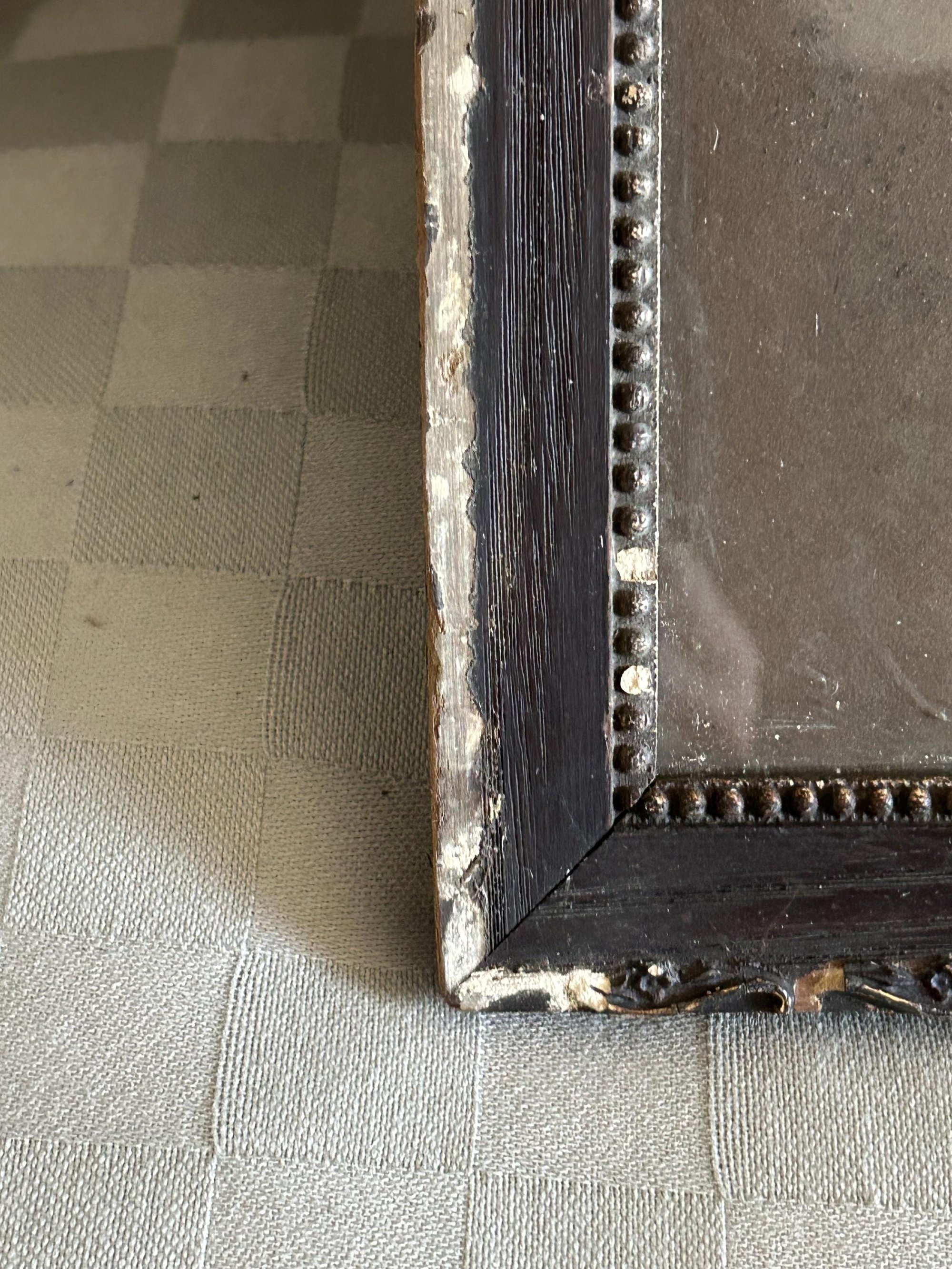 PLEASE NOTE: The frame shows extensive wear, as shown in the pictures, as does the mat and print. A great addition for a truly vintage room.