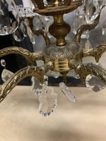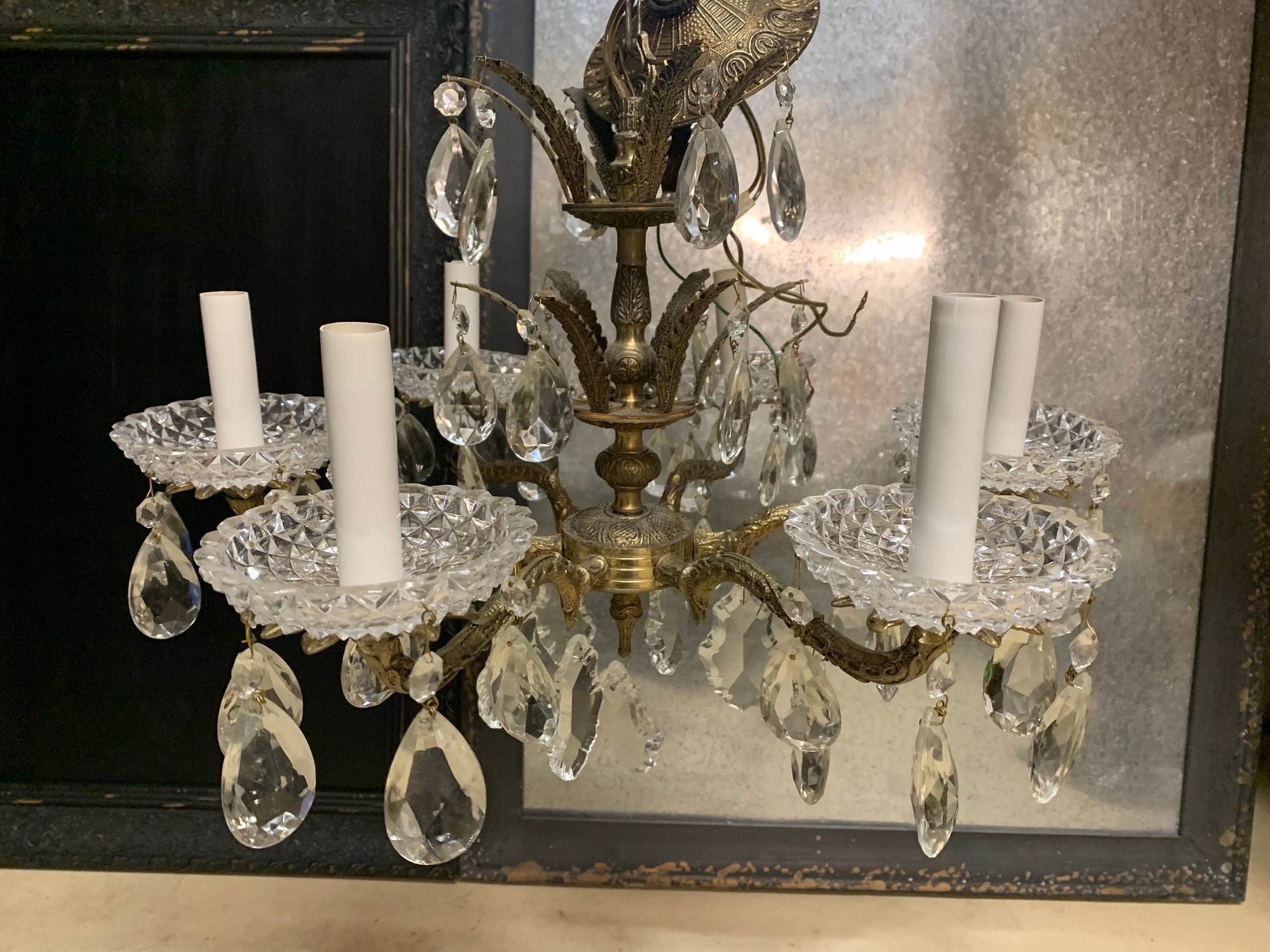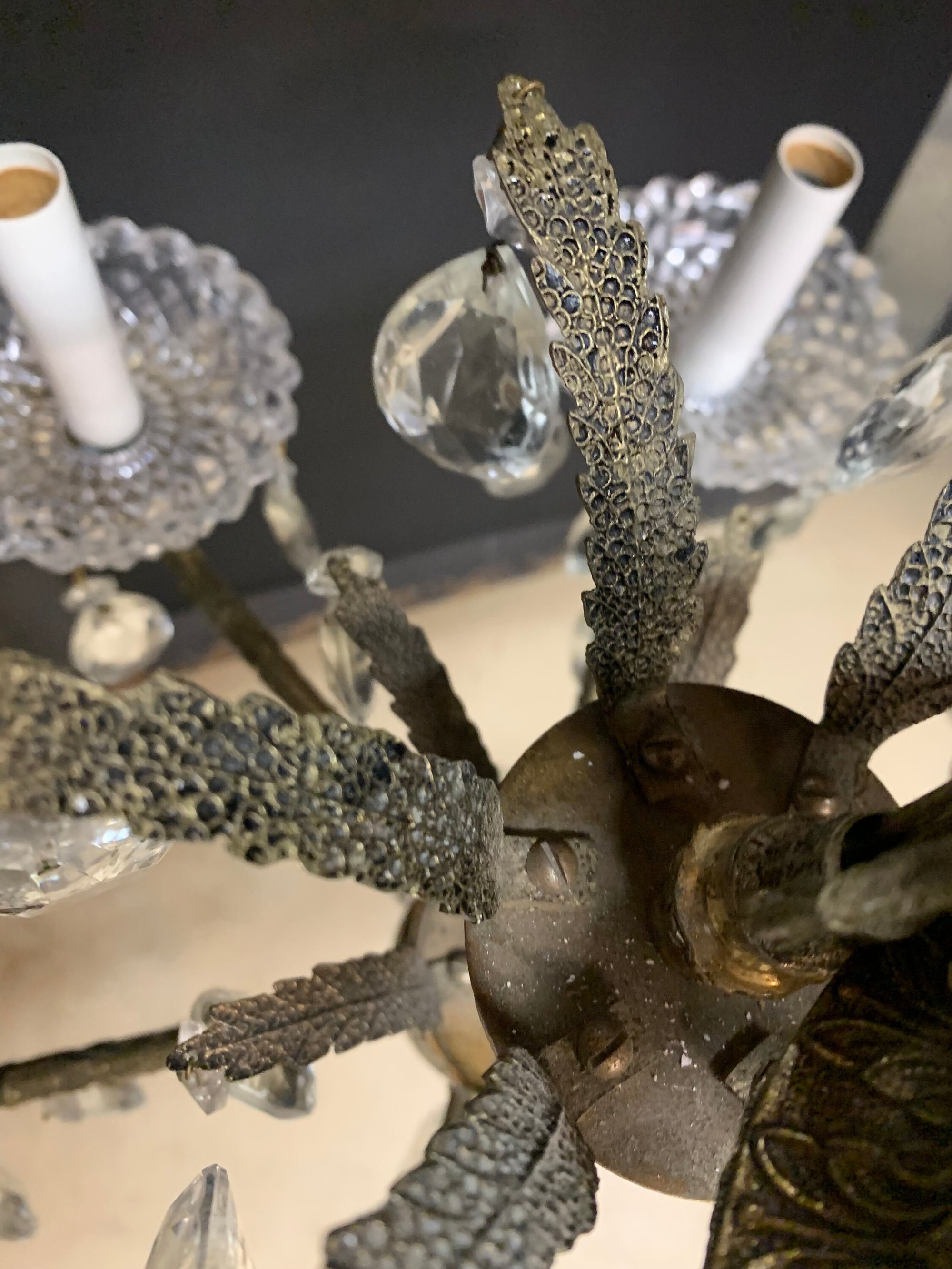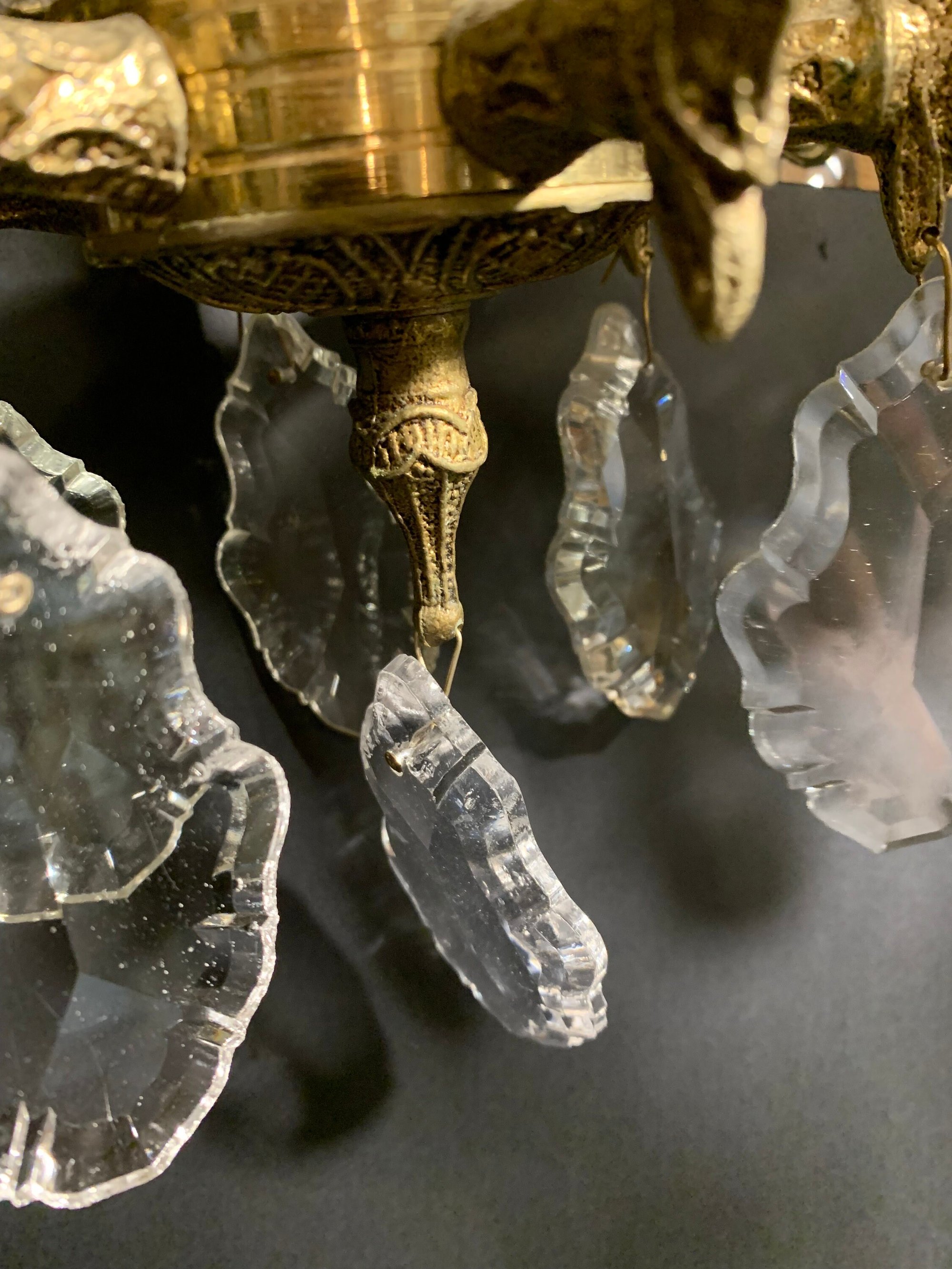 This beautiful antique Spanish chandelier is in very good condition. The detail level in the brass is quite exquisite. Taken from a vintage home that was to be torn down. The chandelier was working but may possibly need rewiring to connect to your own home but original wiring is still intact in the chandelier.