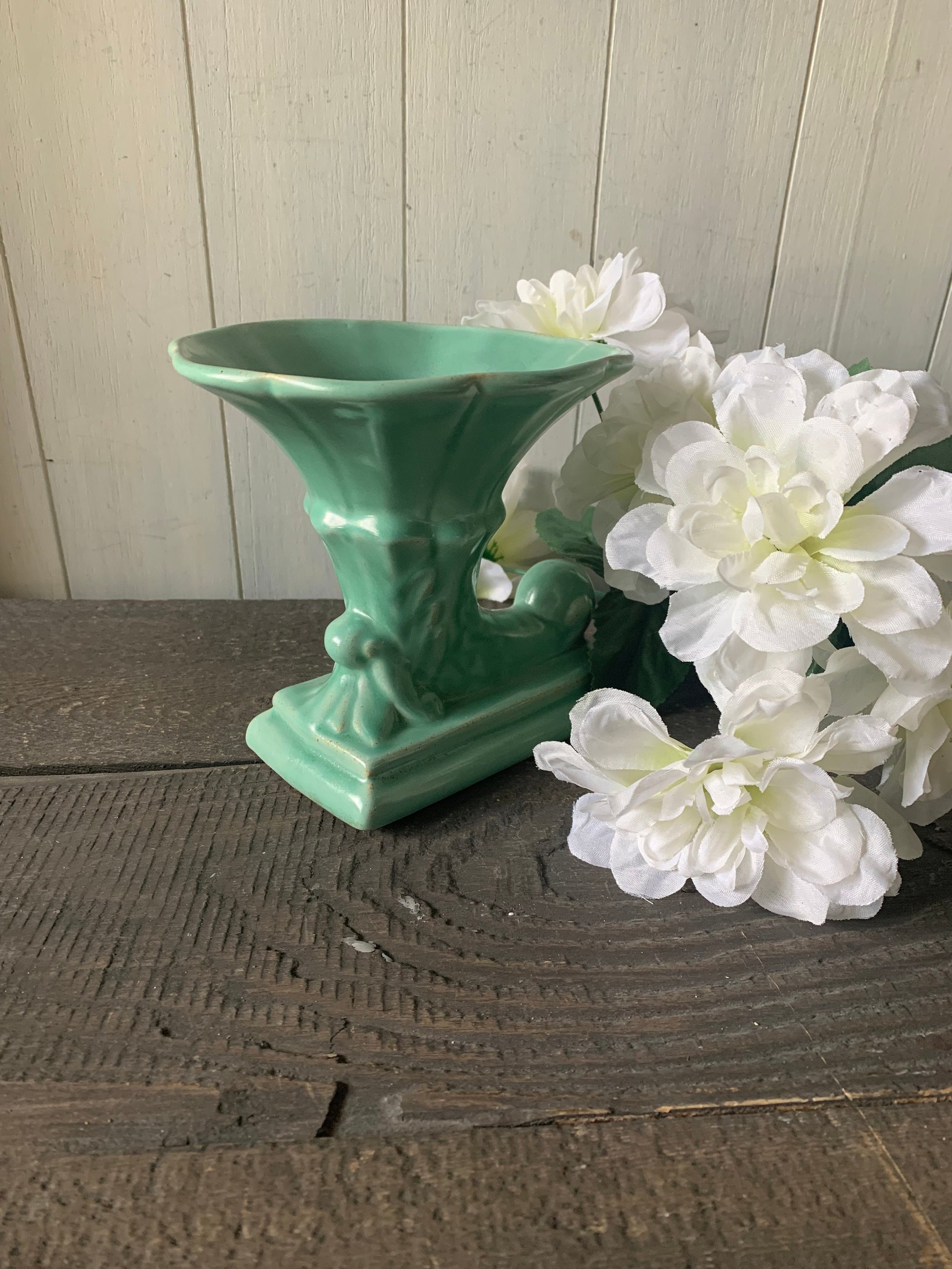 Camark Vintage Green Retro Art Deco Pottery, Horn of Plenty