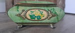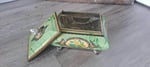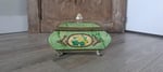 This is a lovely vintage metal tin with charming embossment and a depiction of flowers. It is in very good vintage condition with a bit of patina. The lid comes off and goes on easily.