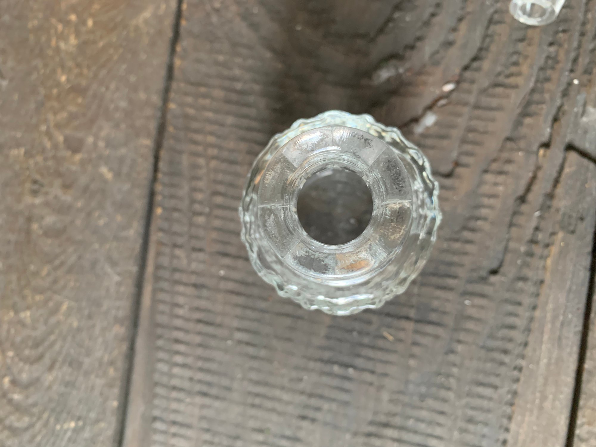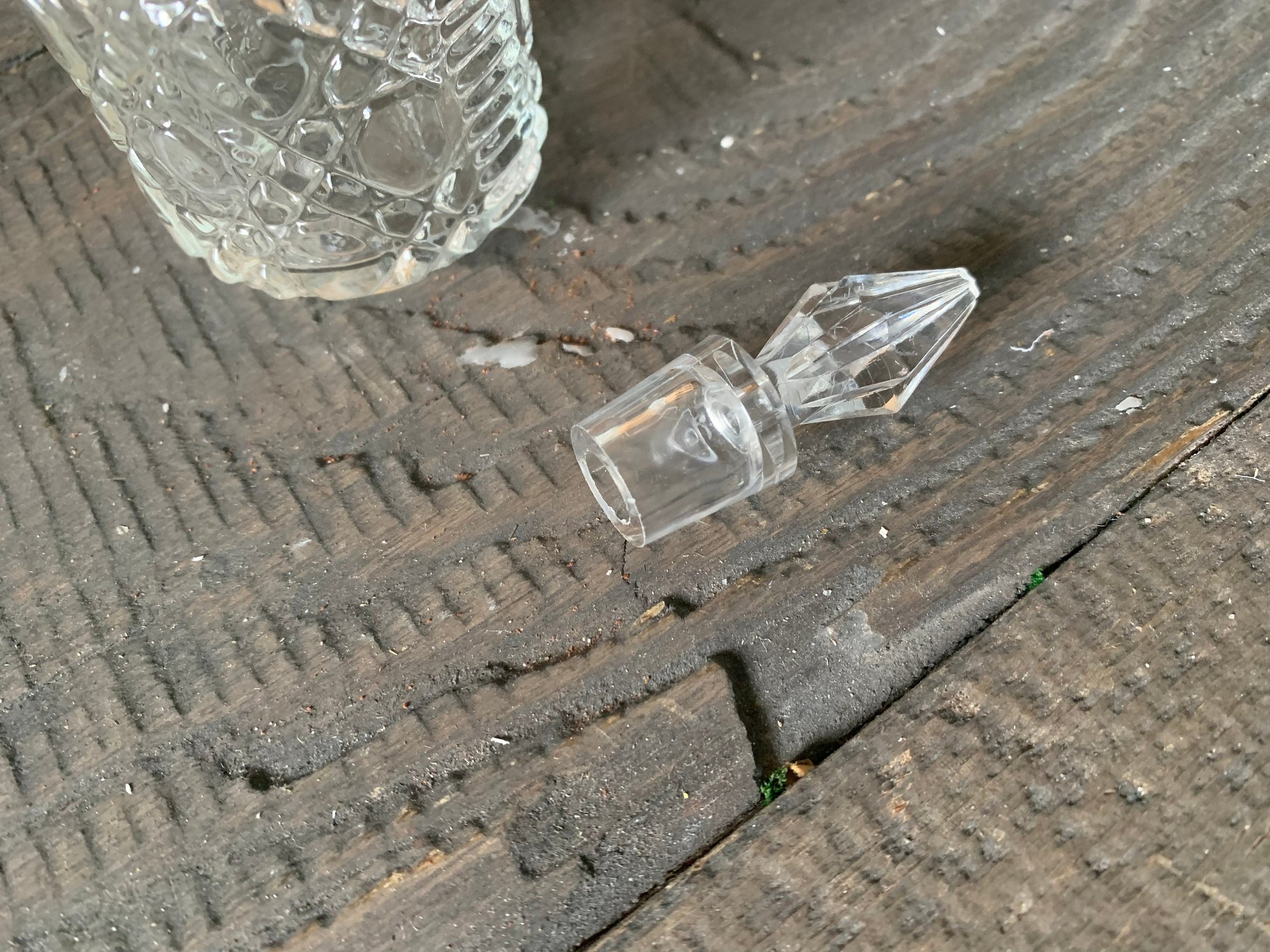 This small vintage cut glass perfume bottle with glass stopper is in very good condition. The detail on the glass is very pretty. Great for small decorative vanity trays beside your bed or in the bathroom.