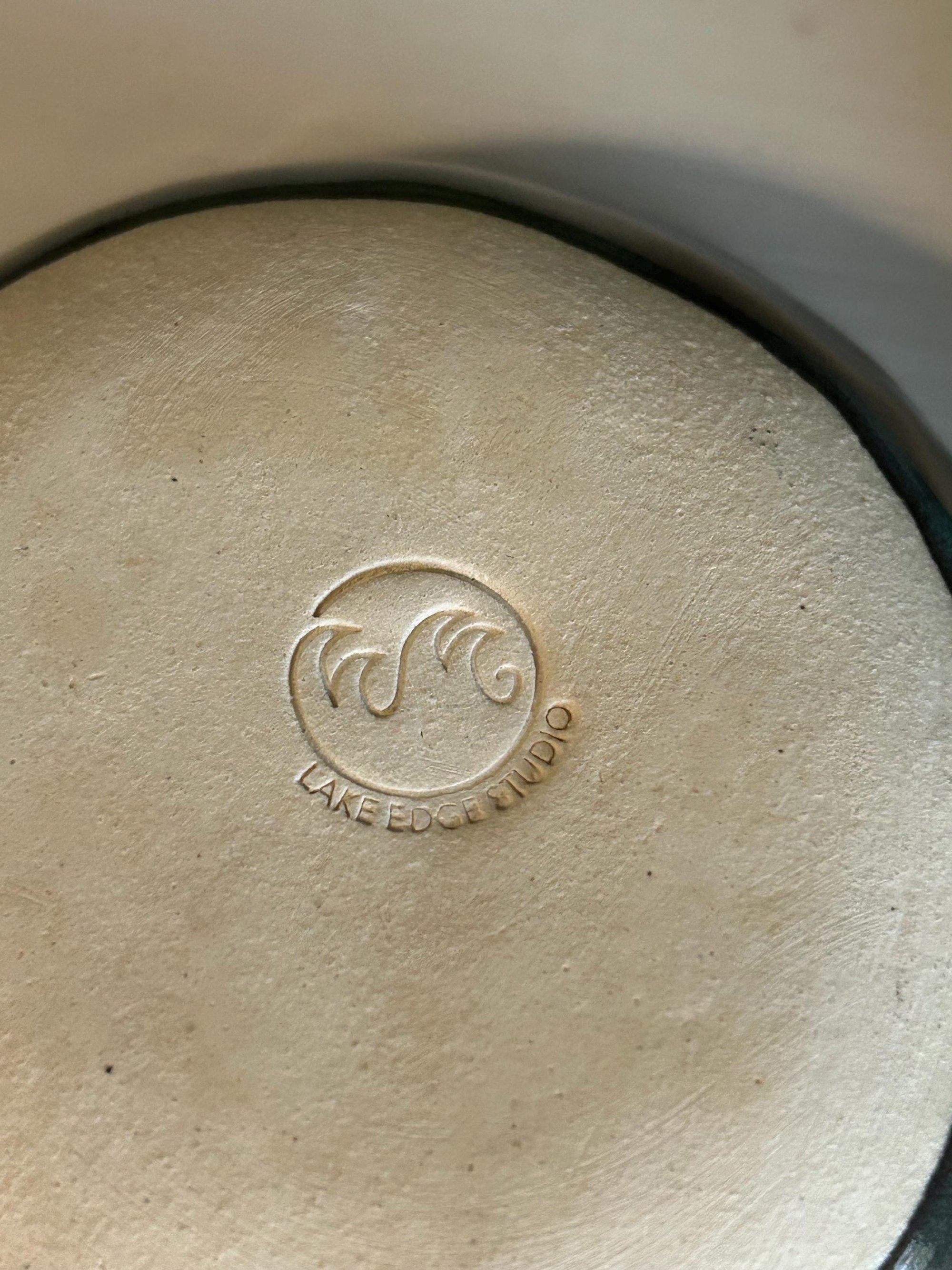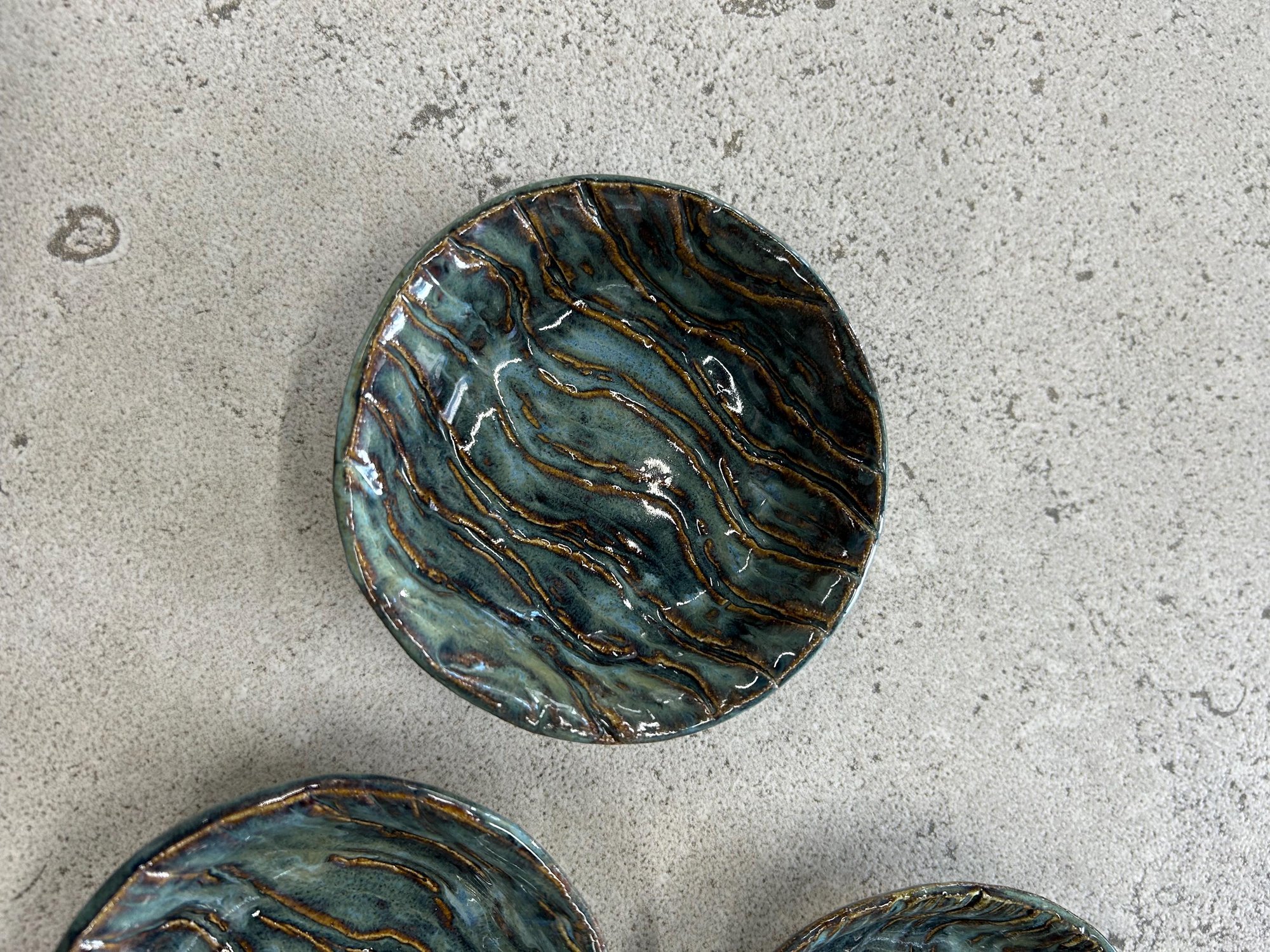 These pottery dishes are handmade in BC Canada. The blue colouring is quite striking with the lines of brown running through the blue