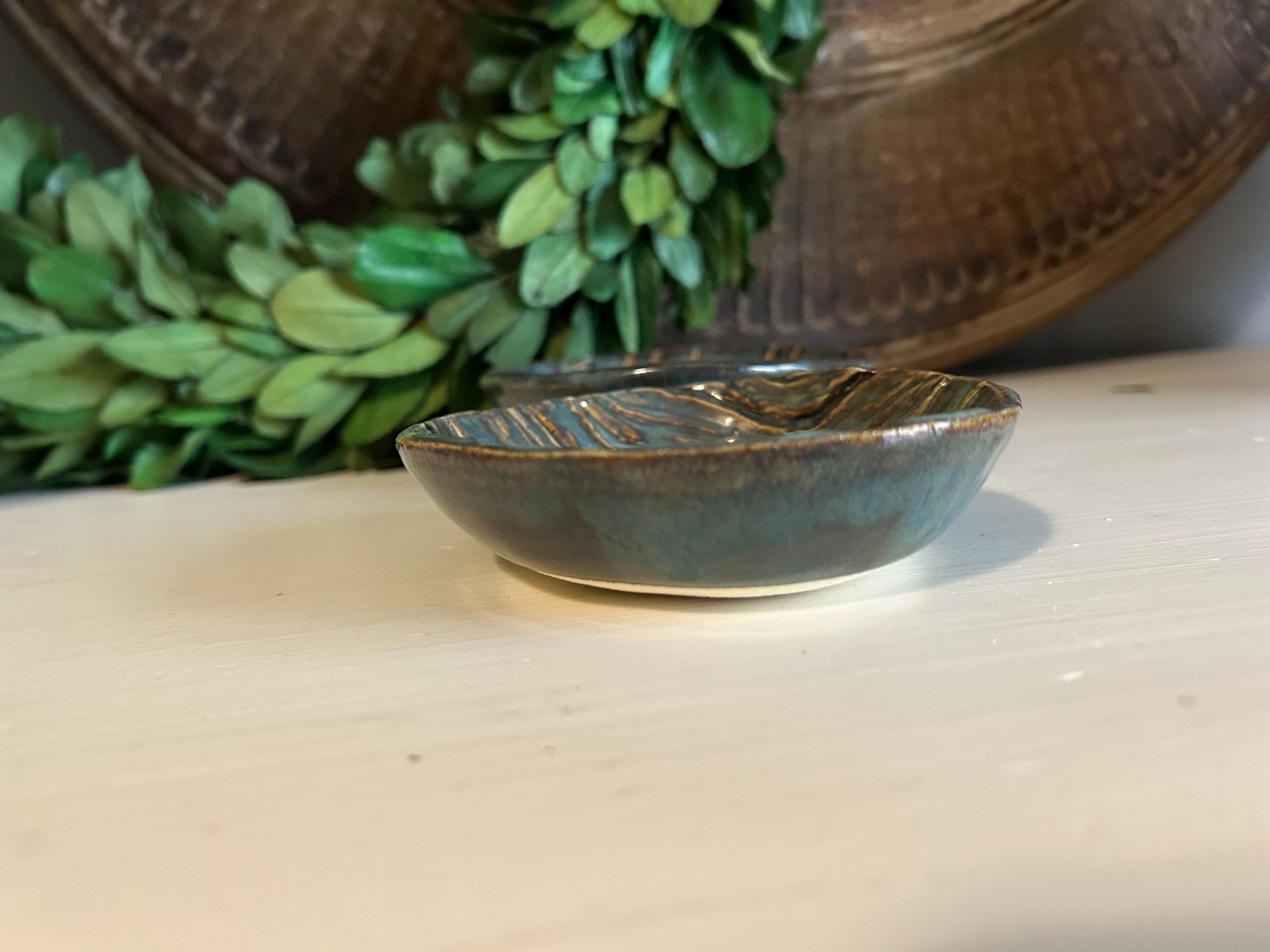Handmade Blue Pottery Trinket Dish, Made in Canada
