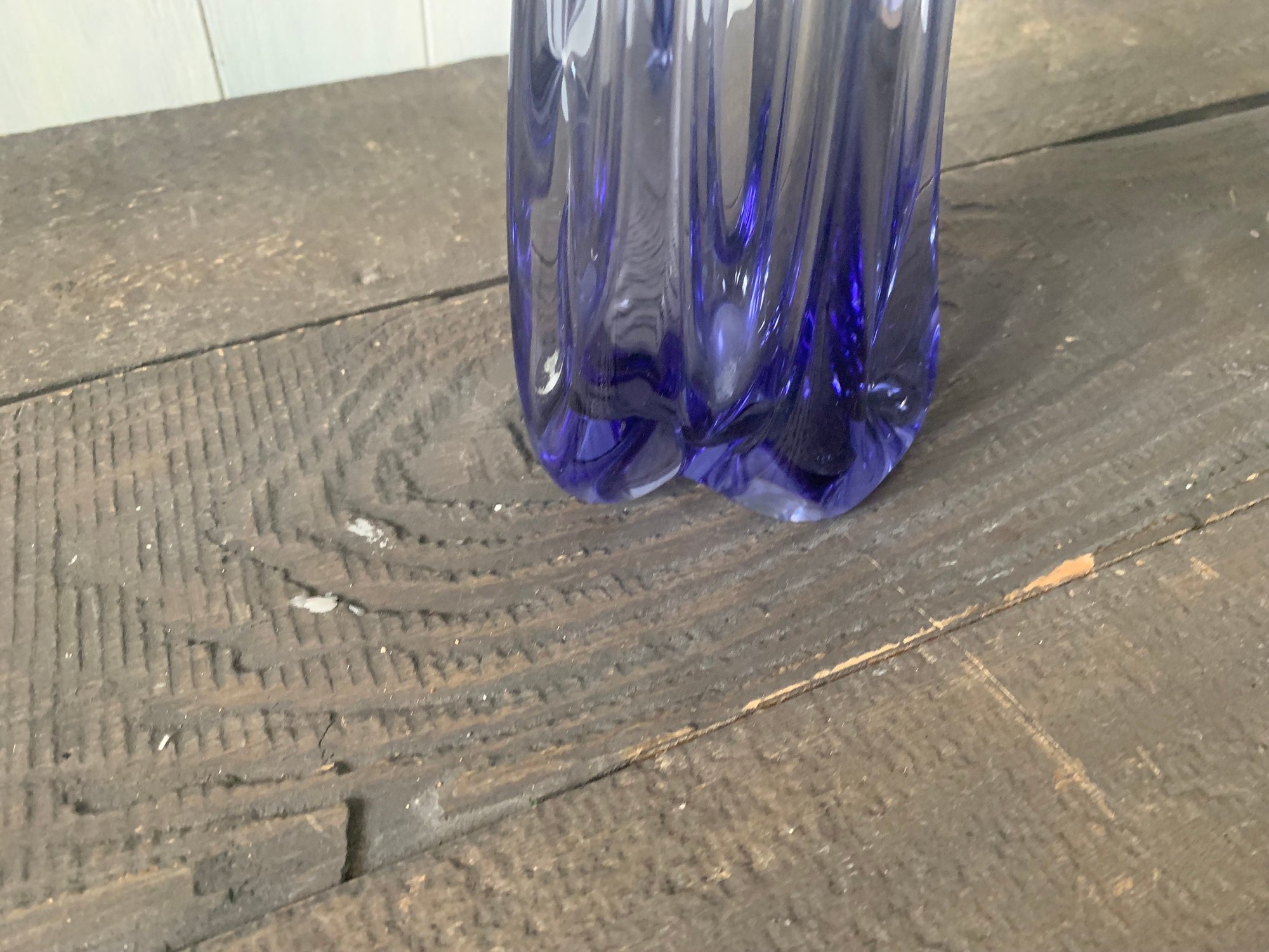 This unique mid-century modern vase from the 80s is in excellent condition. No chips or scratches on the glass.