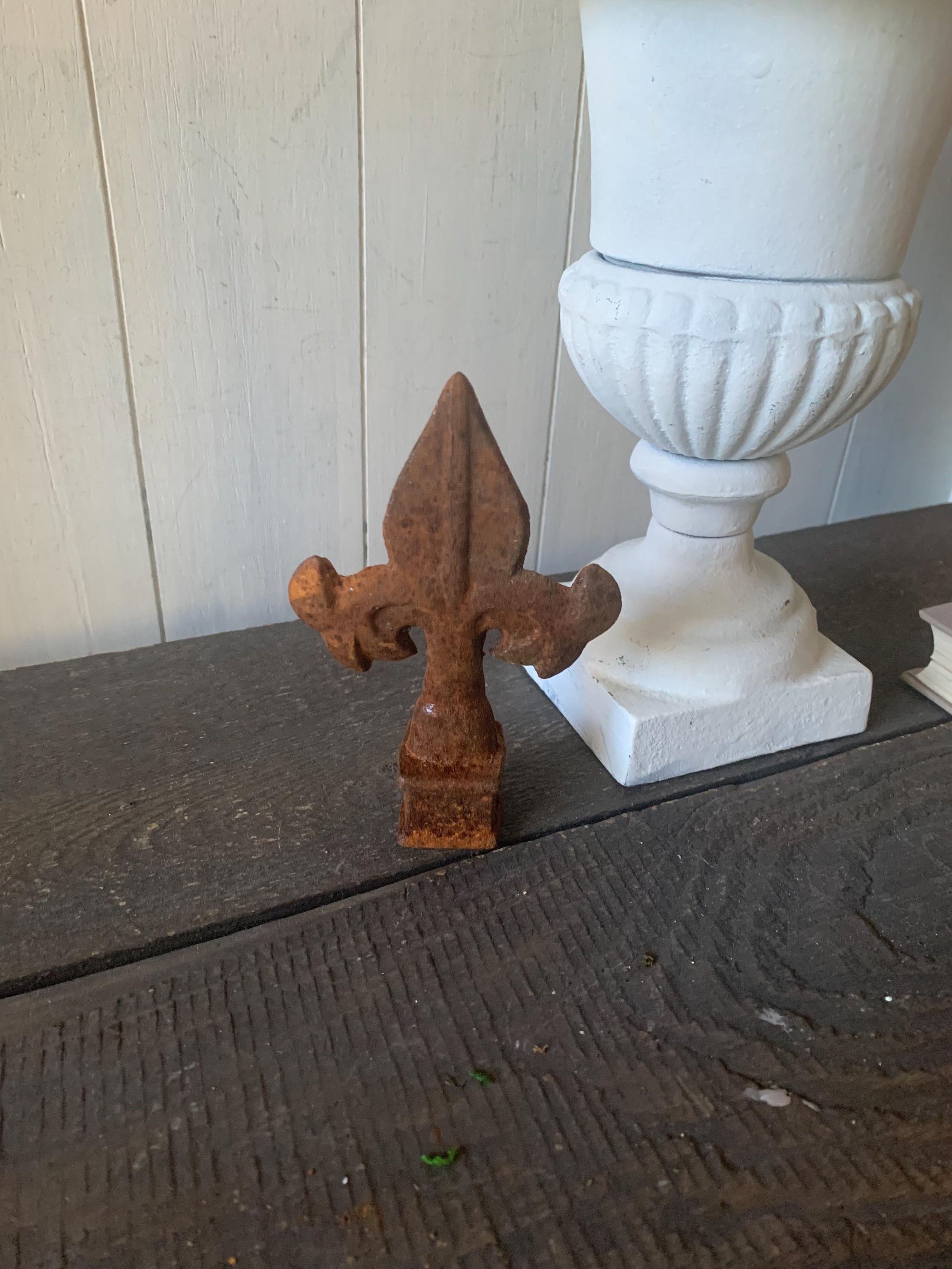 Rusty Cast Iron Fleur de Lis, Star Finial