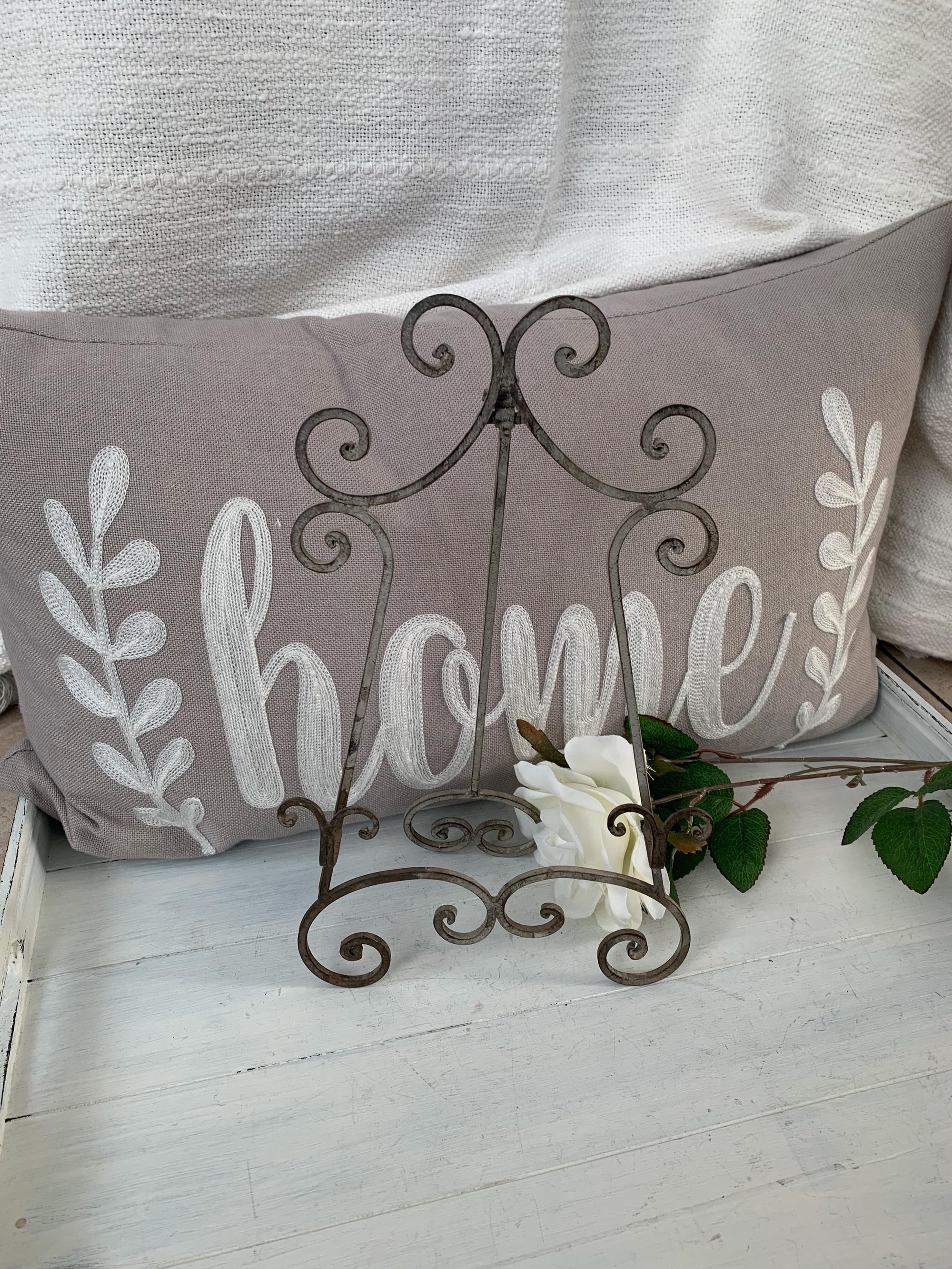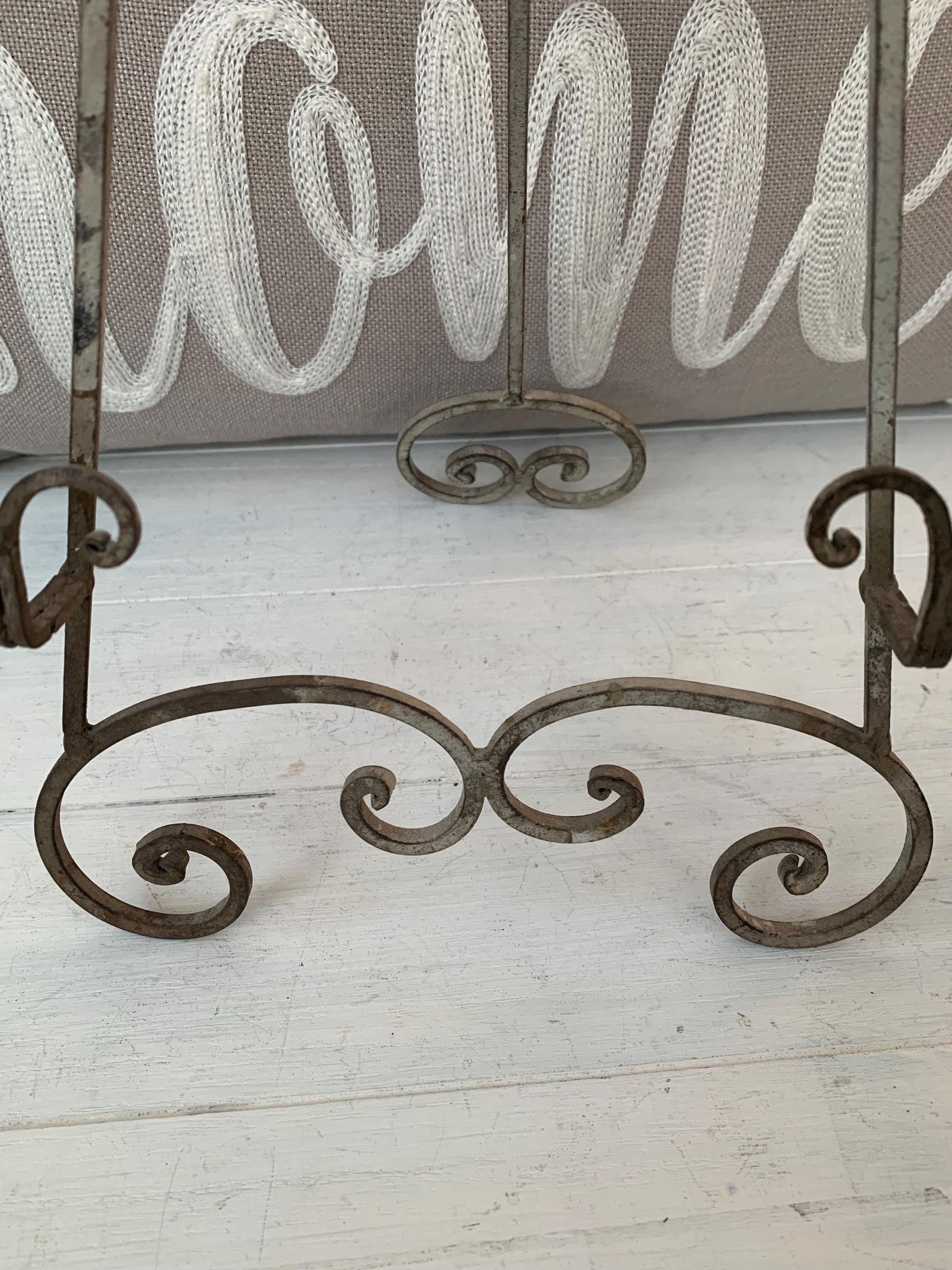 This light weight vintage easel is made in the shabby chic metal style. It is in great shape and closes and opens no problem.