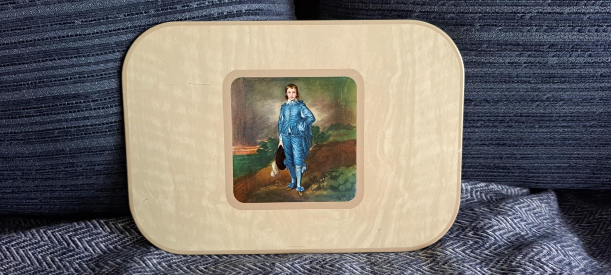 This is a quaint Blue Boy hot plate used for pots on counters or tables. It does not have any chips or cracks though it does have a couple of noticeable scratches on the top.