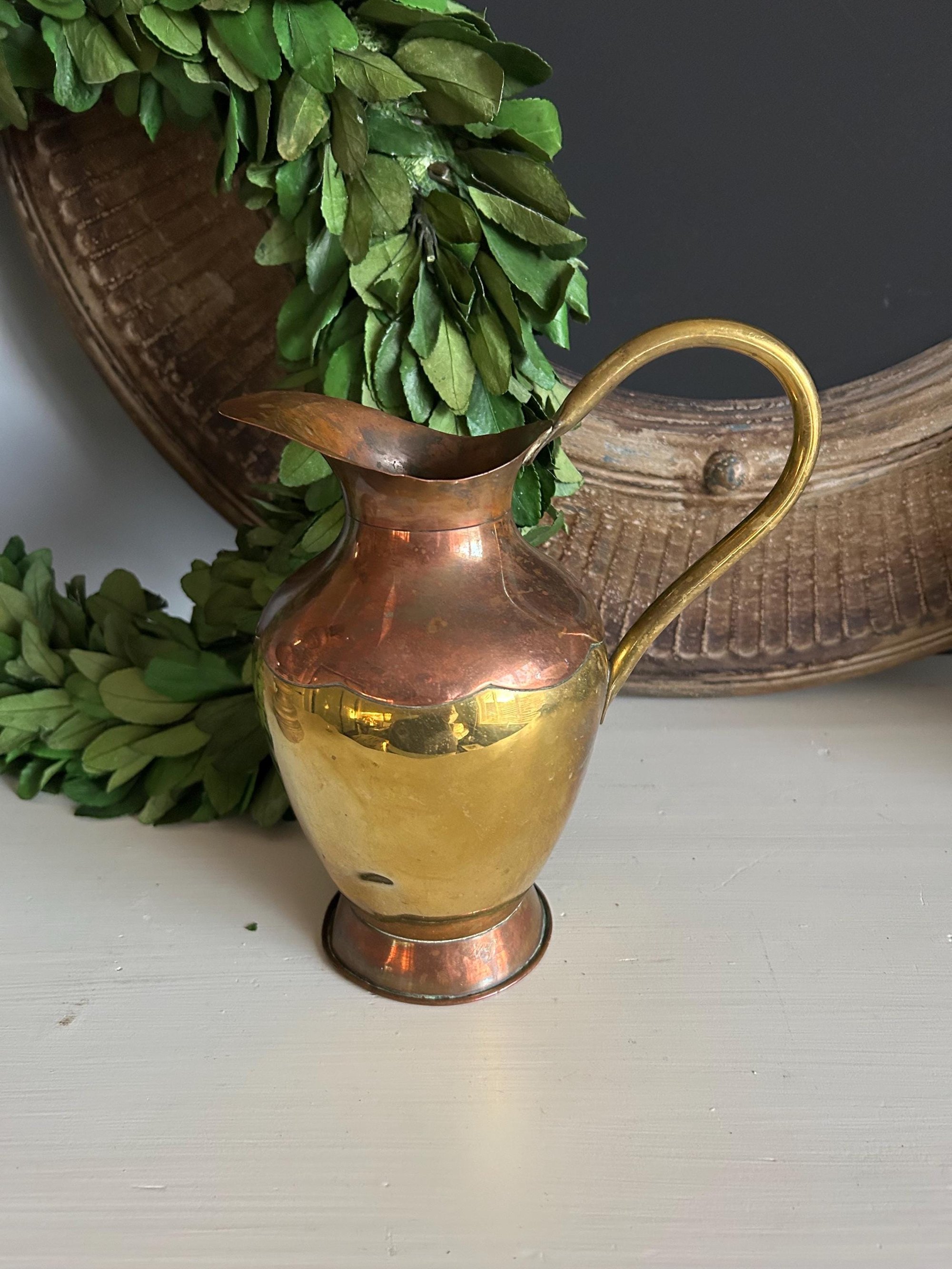 Brass and Copper Pitcher, MCM Jug, Farmhouse Vase