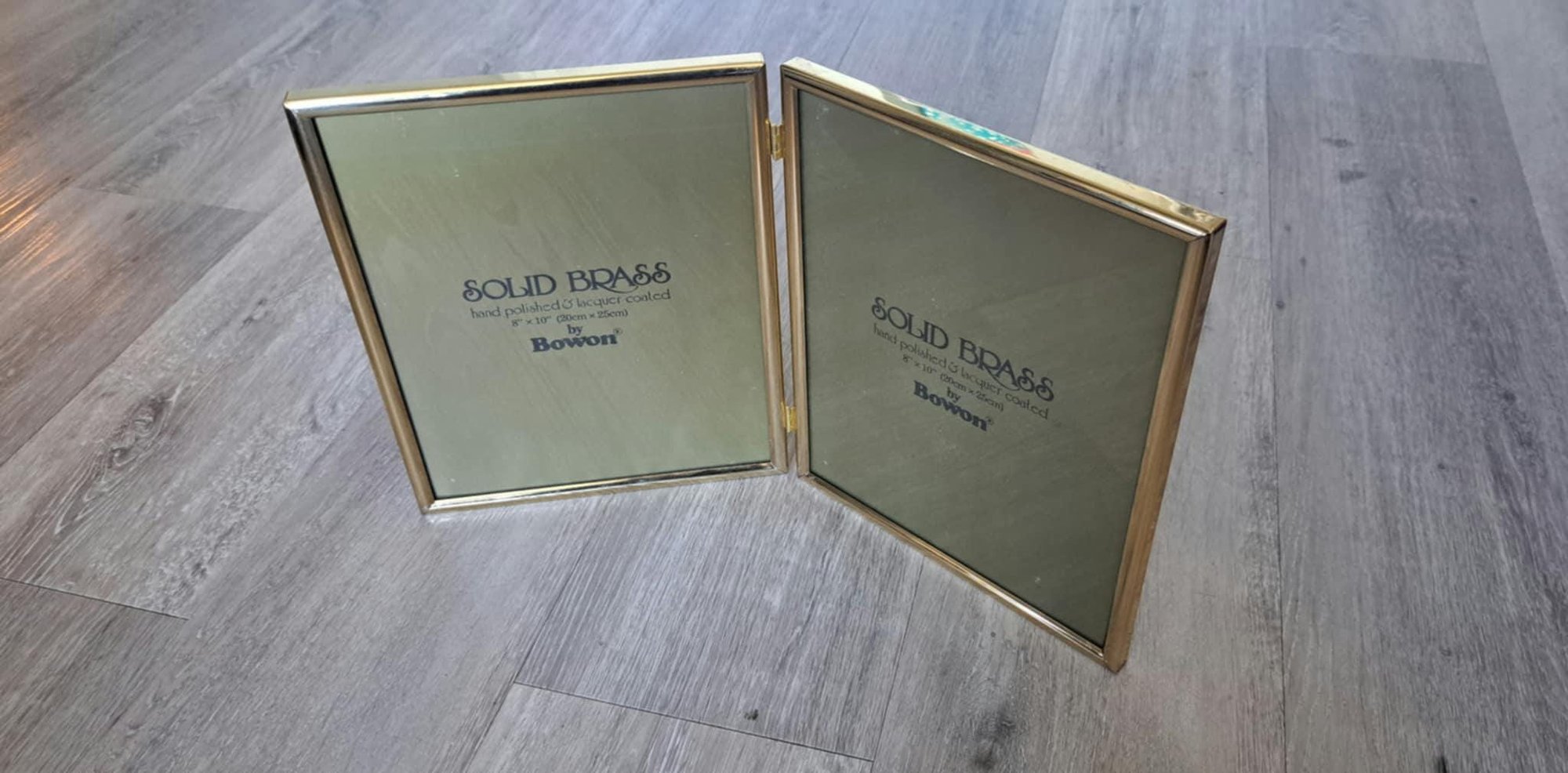 Brass Double Picture Frame, Bi-Fold Tabletop 8x10