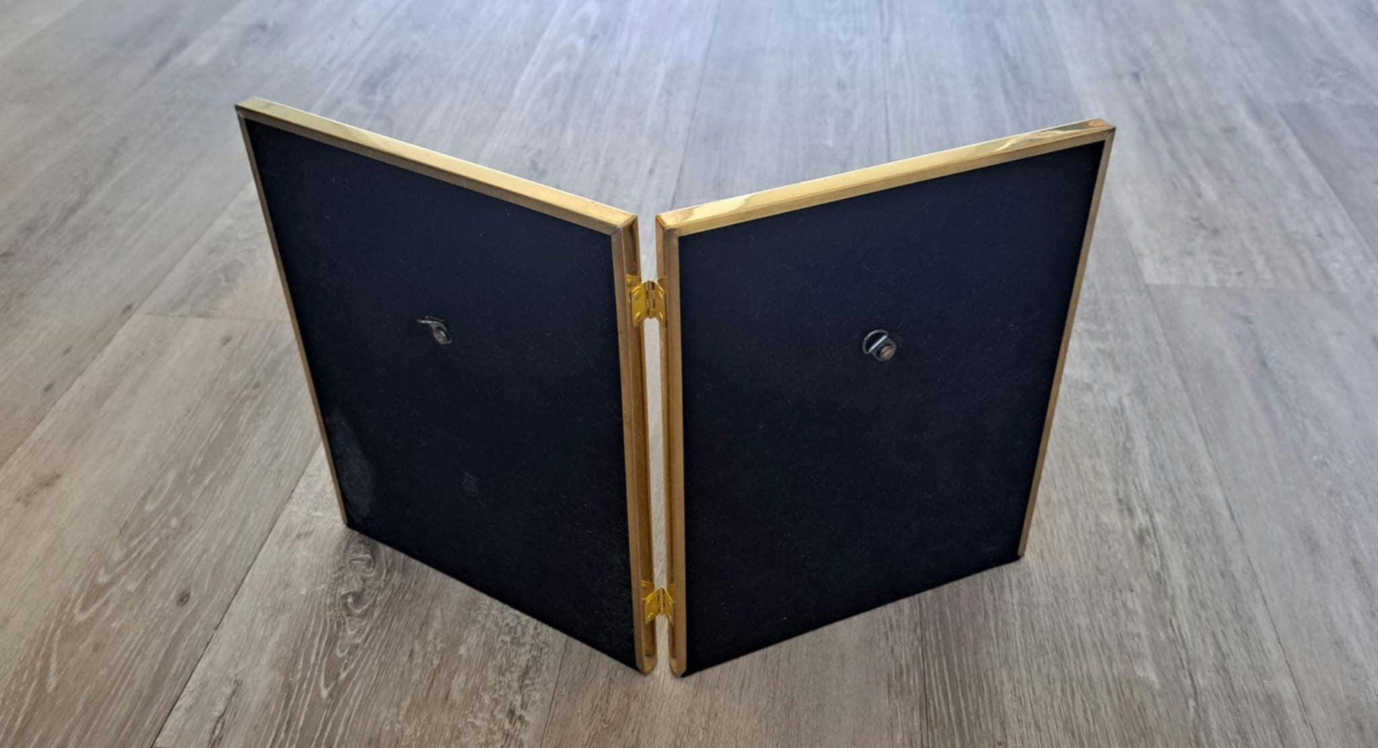 This double sided picture frame is in good vintage condition. The brass is in great shape and the hinges work well. Closes firmly and smoothly. The velvet is in very good condition, appears to be a dark brown colour