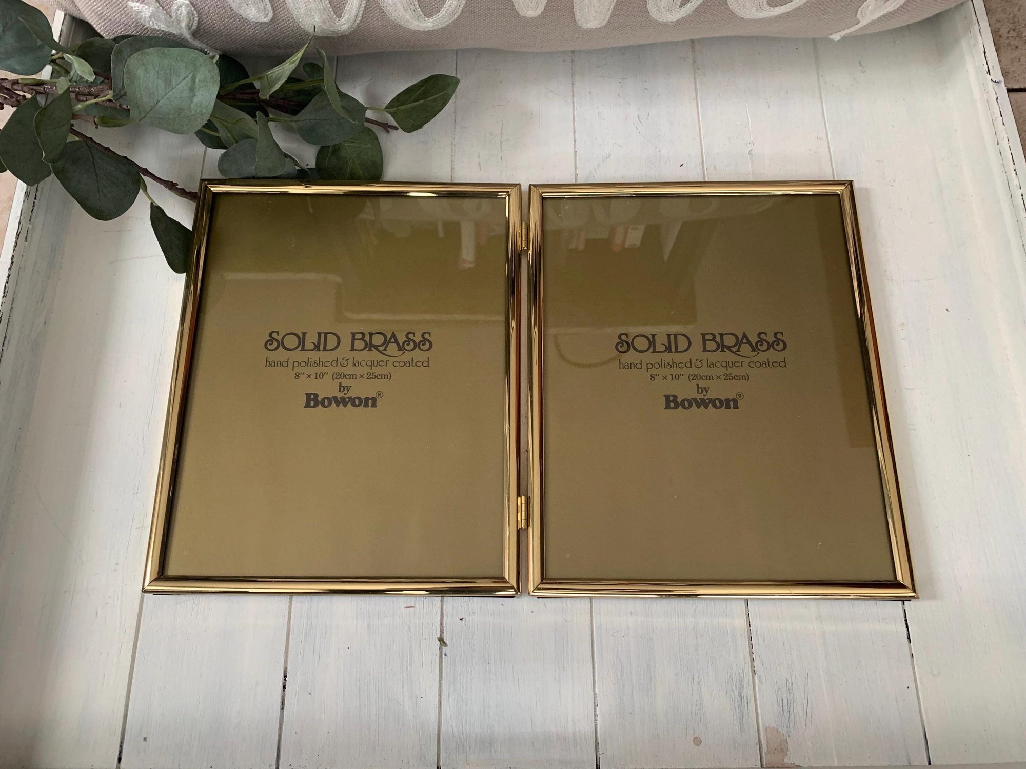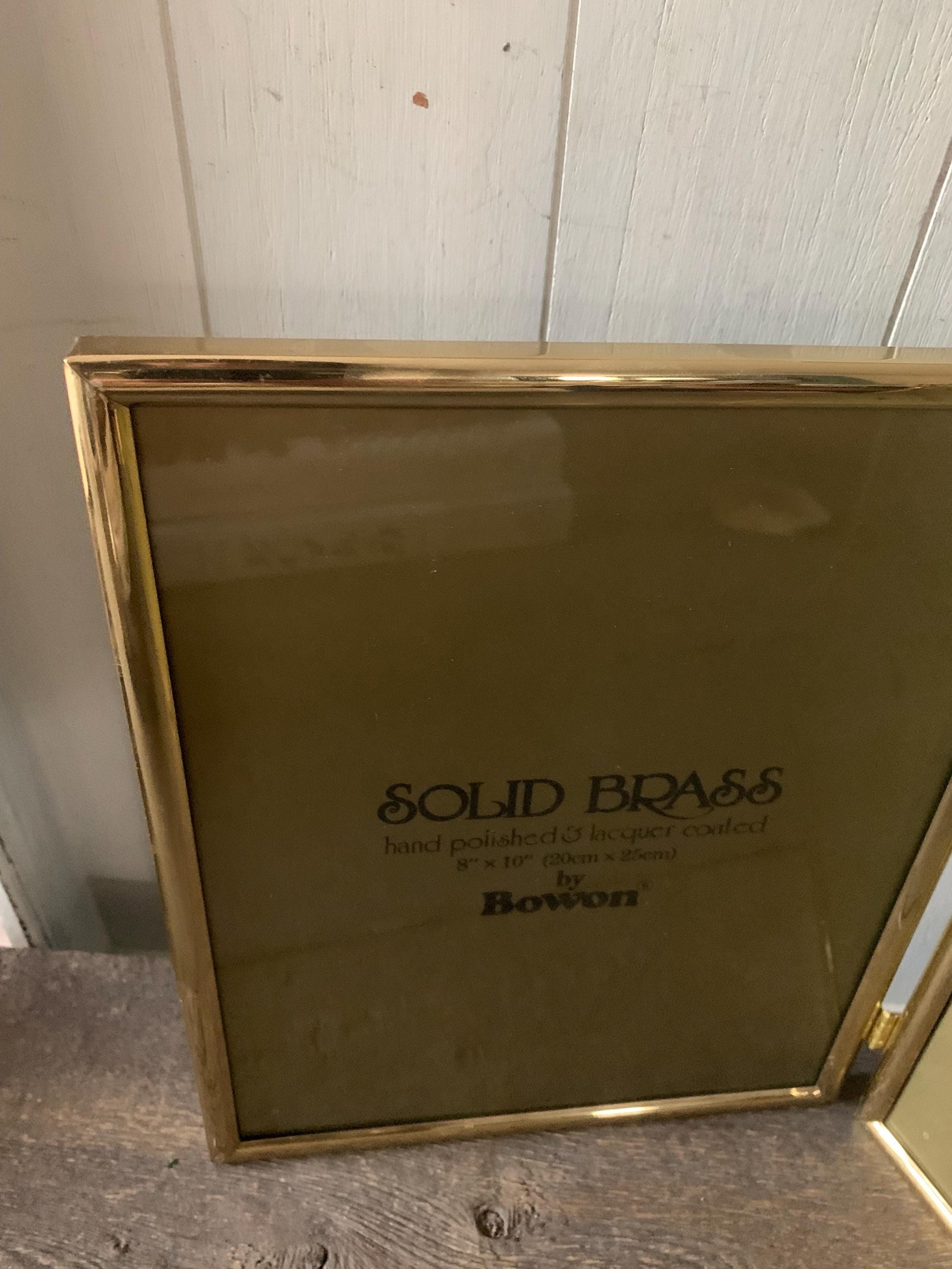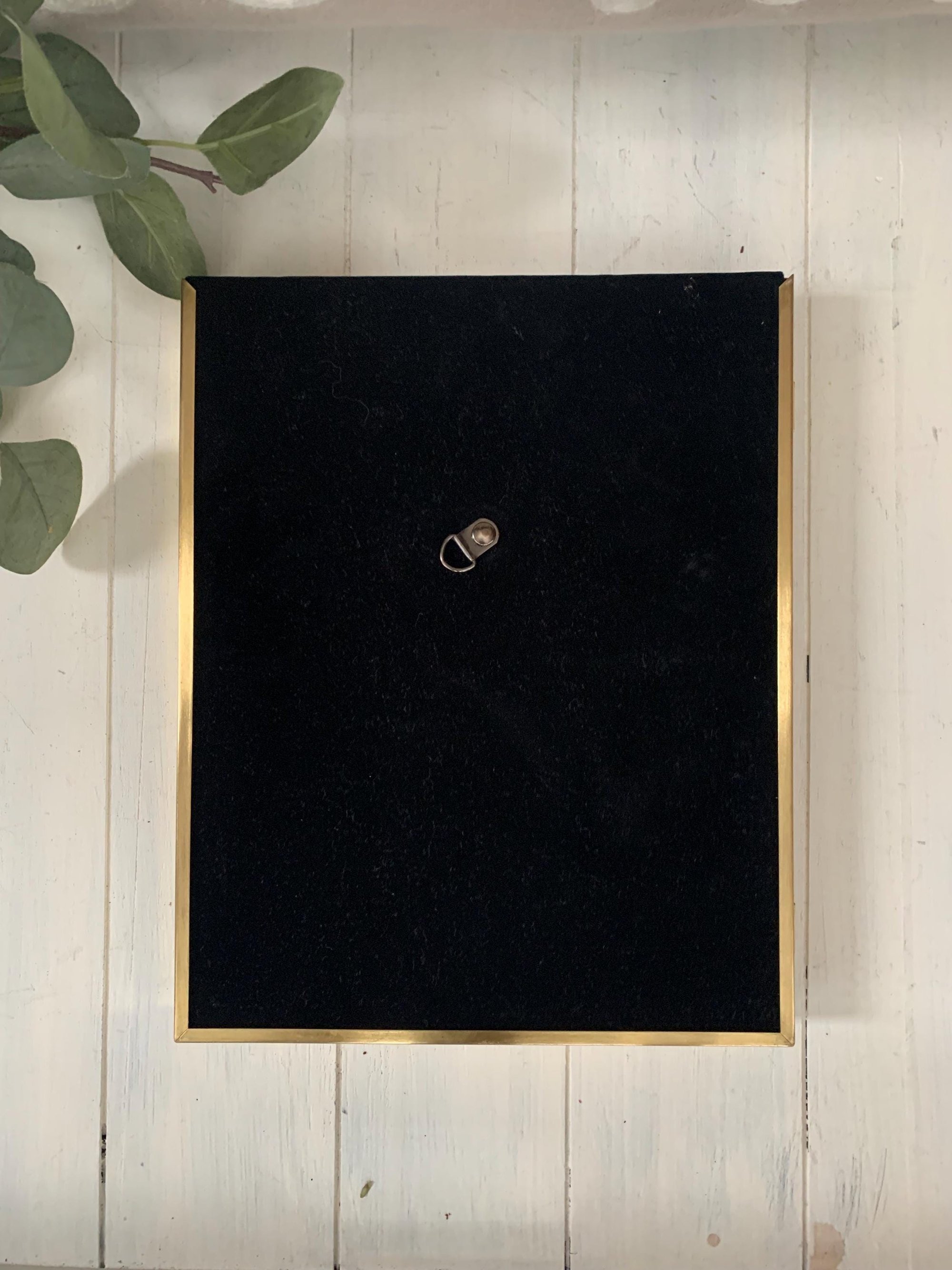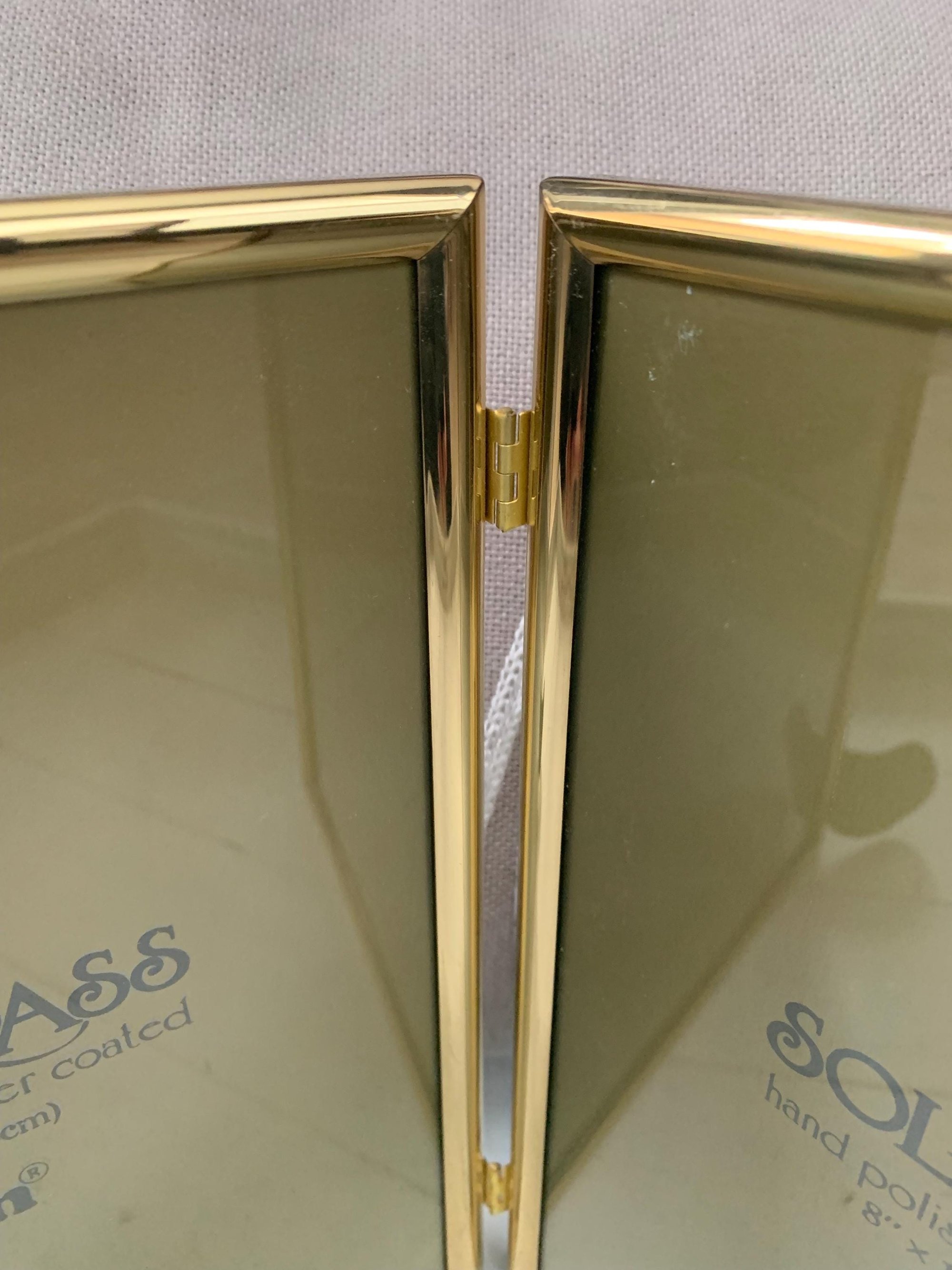 This double sided picture frame is in excellent vintage condition. The brass is in great shape and the hinges work well. Closes firmly and smoothly and the black velvet is in great shape.