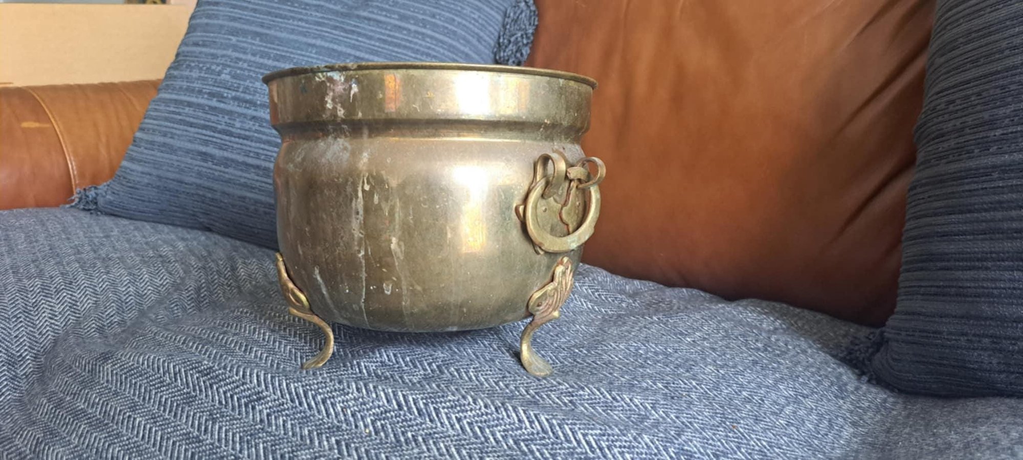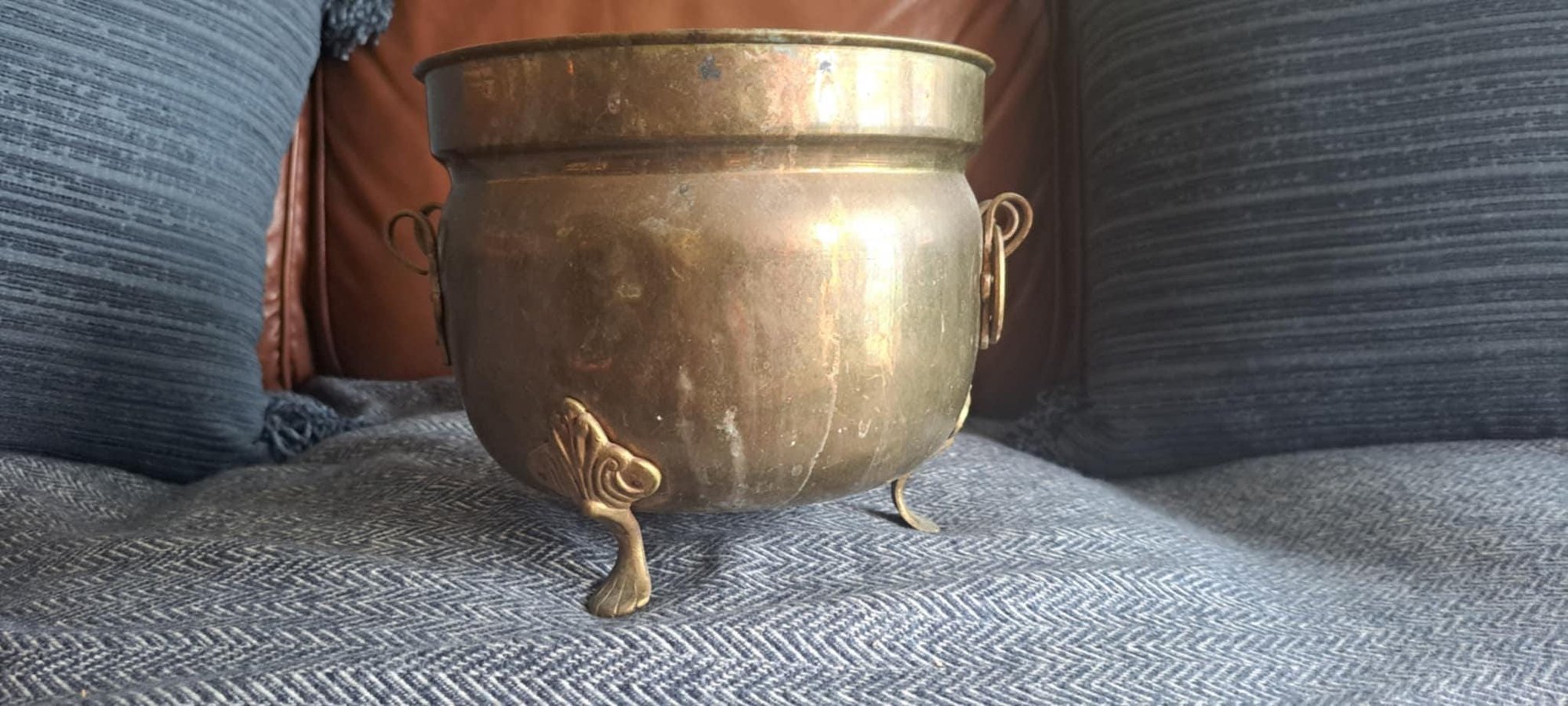 Brass Planter Pot, Handmade Indian Decor (Handle Missing)
