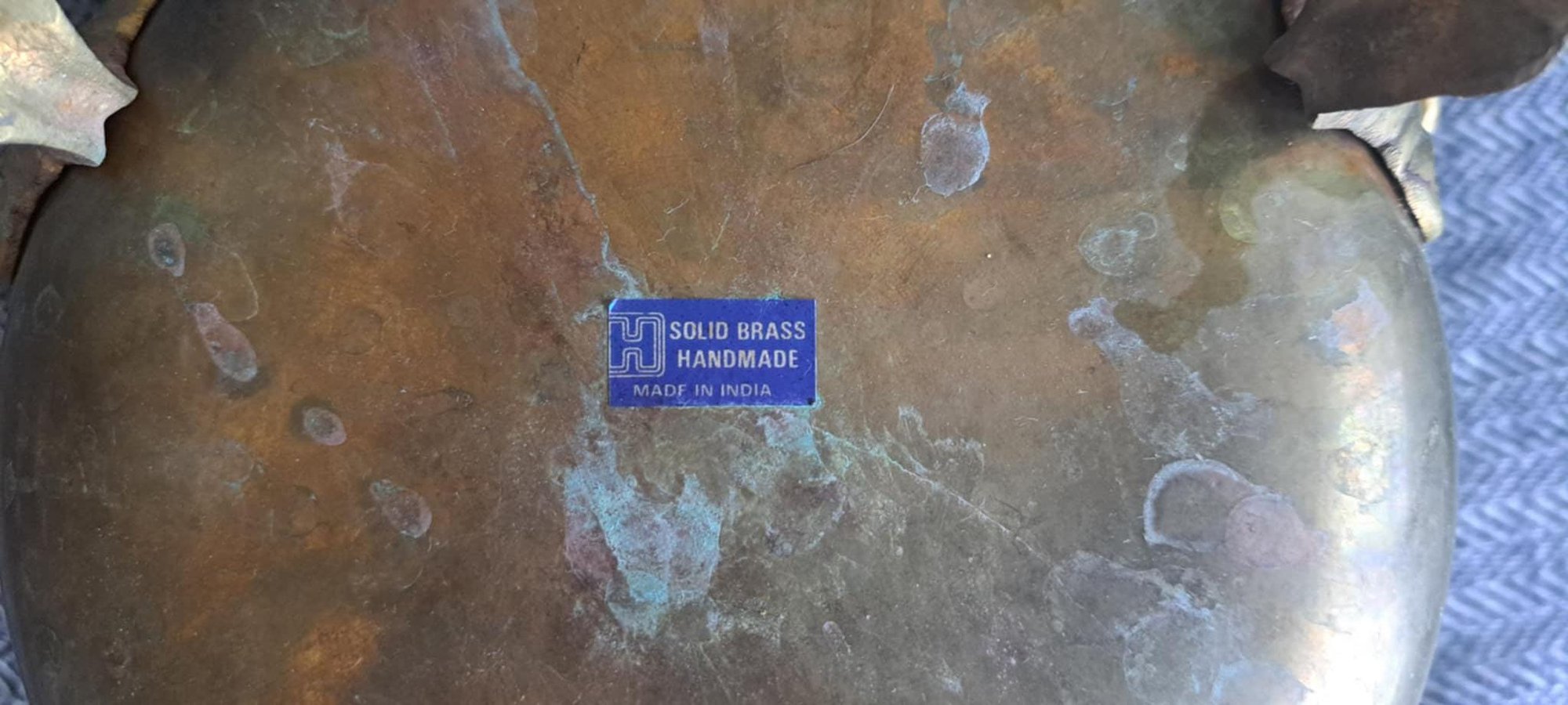 This brass pot made in India is in good vintage condition. The legs are strong and are square on any surface. Please see the pictures as one of the handles is missing. It is used and has a great with one dent as shown in Picture 5.