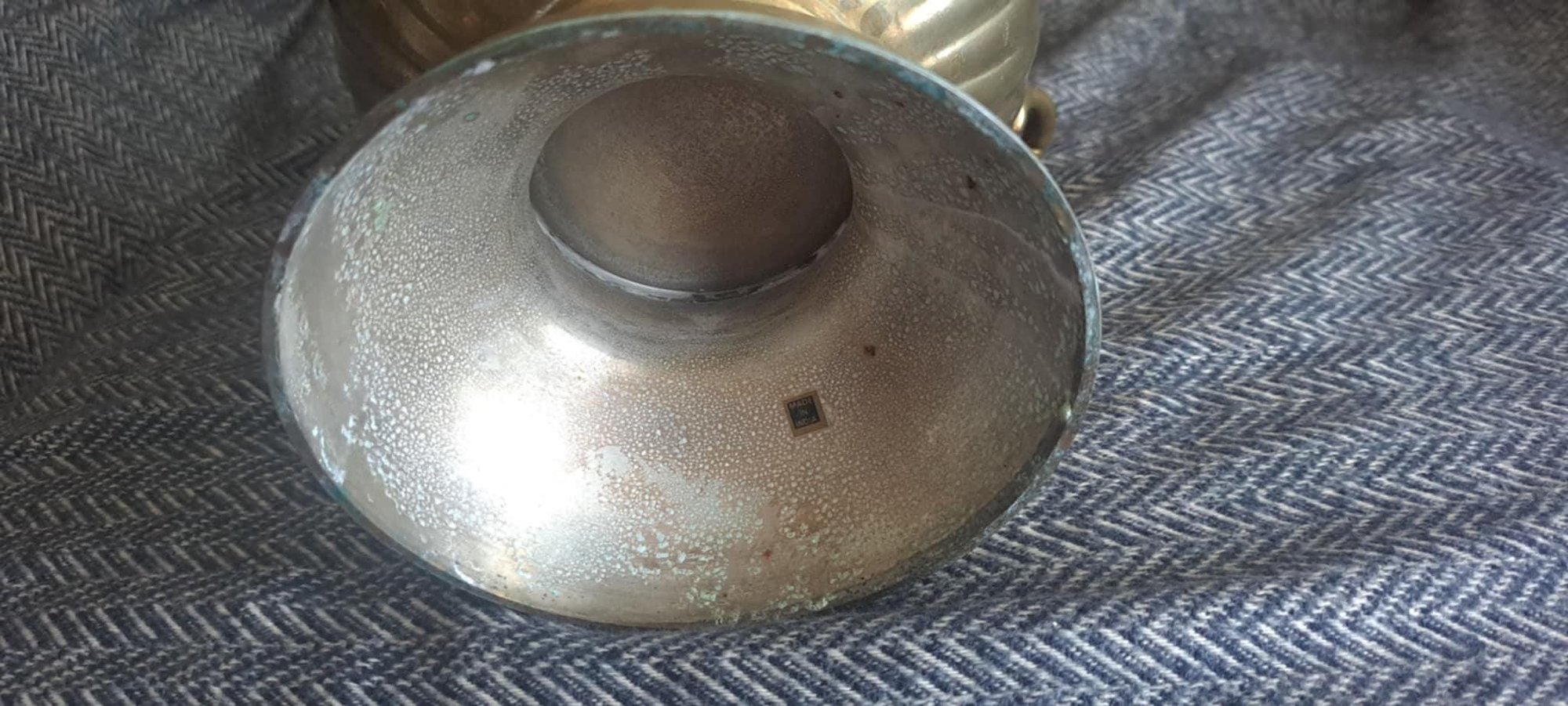 This brass pot made in India is in good vintage condition. The bottom is strong and sits square on any surface. There is rust on the bottom (see pictures).