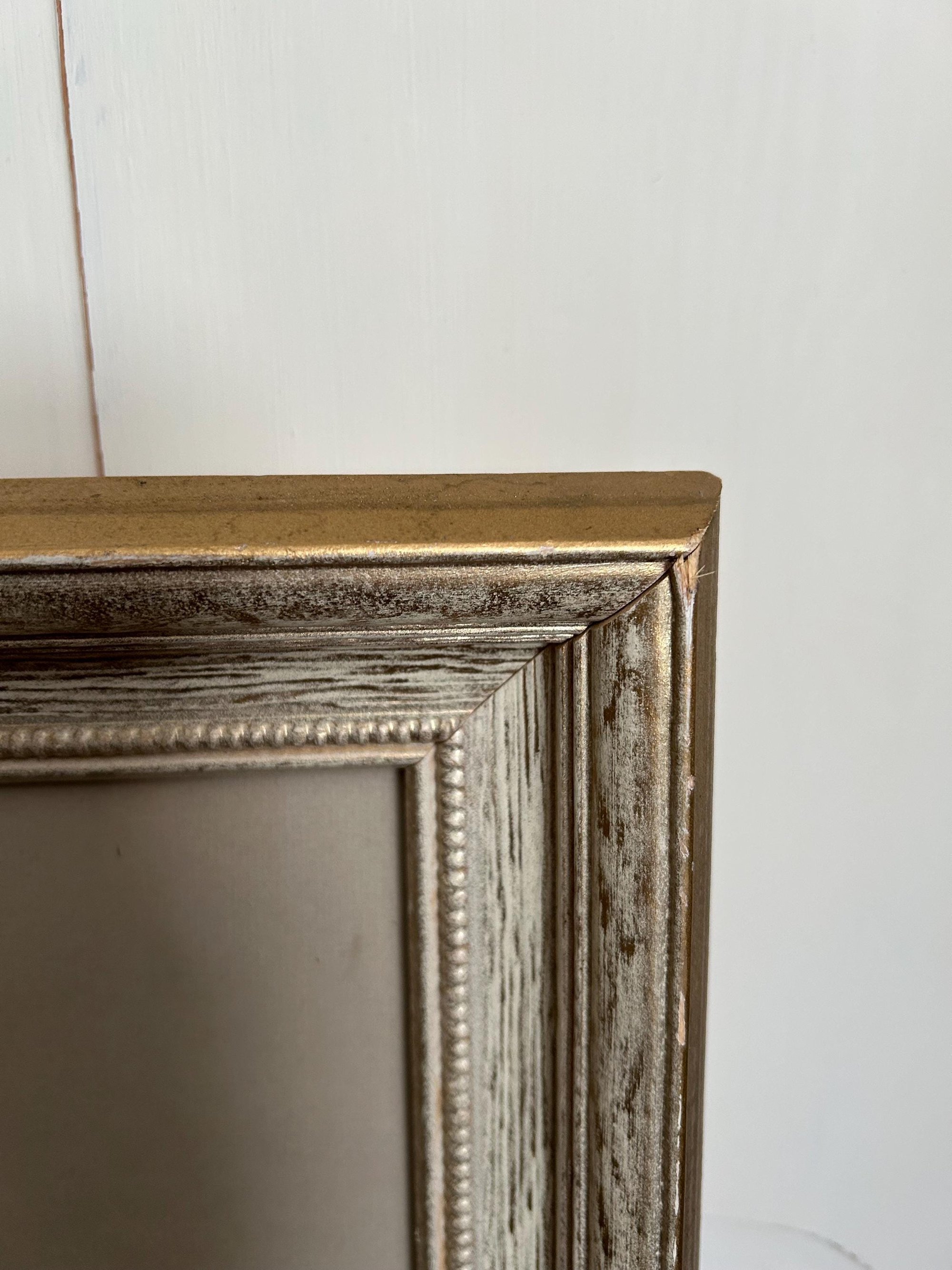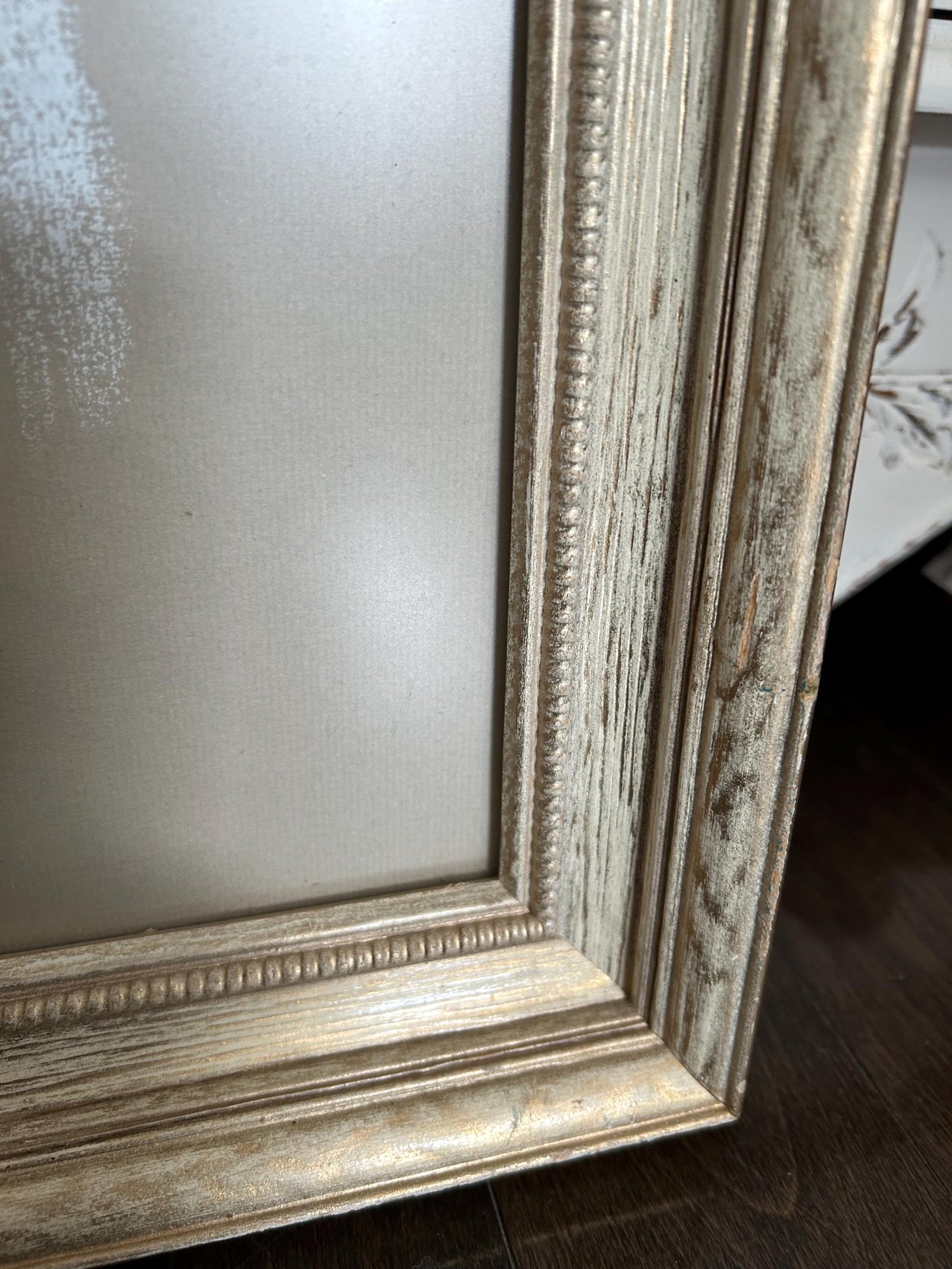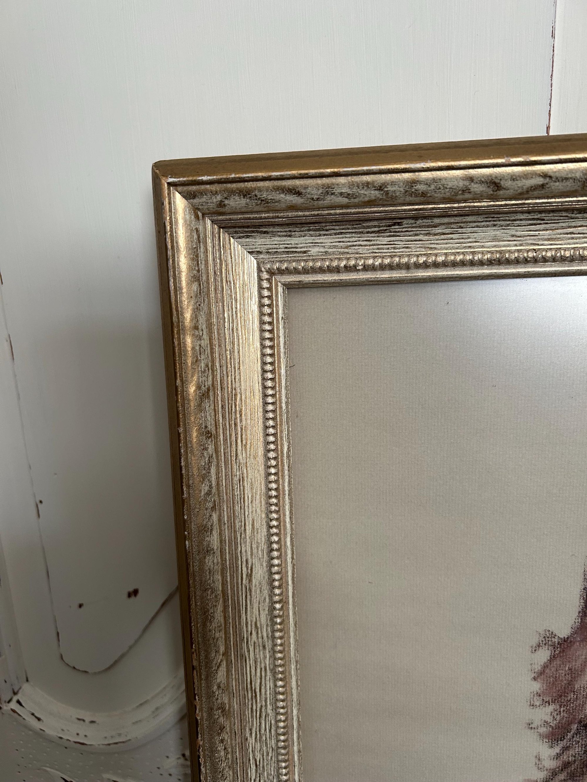 There are a few marks on the frame as shown (please see pics) otherwise in great shape. This is signed and is sturdy and strong. Use a a vintage decor piece or use the frame for your own art.