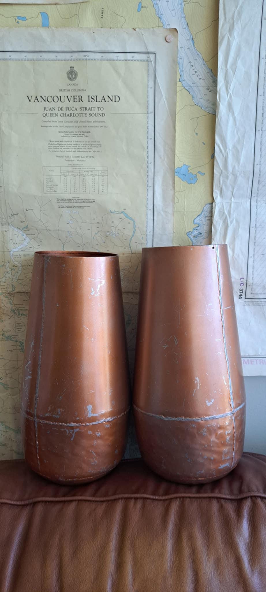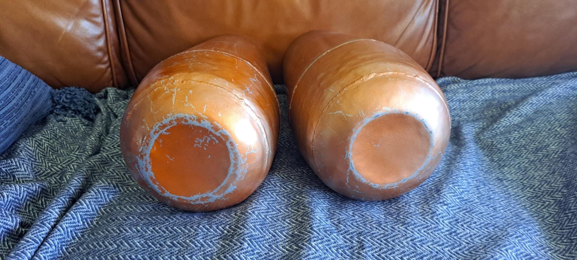 Copper Coloured Metal Vase, Farmhouse Tabletop