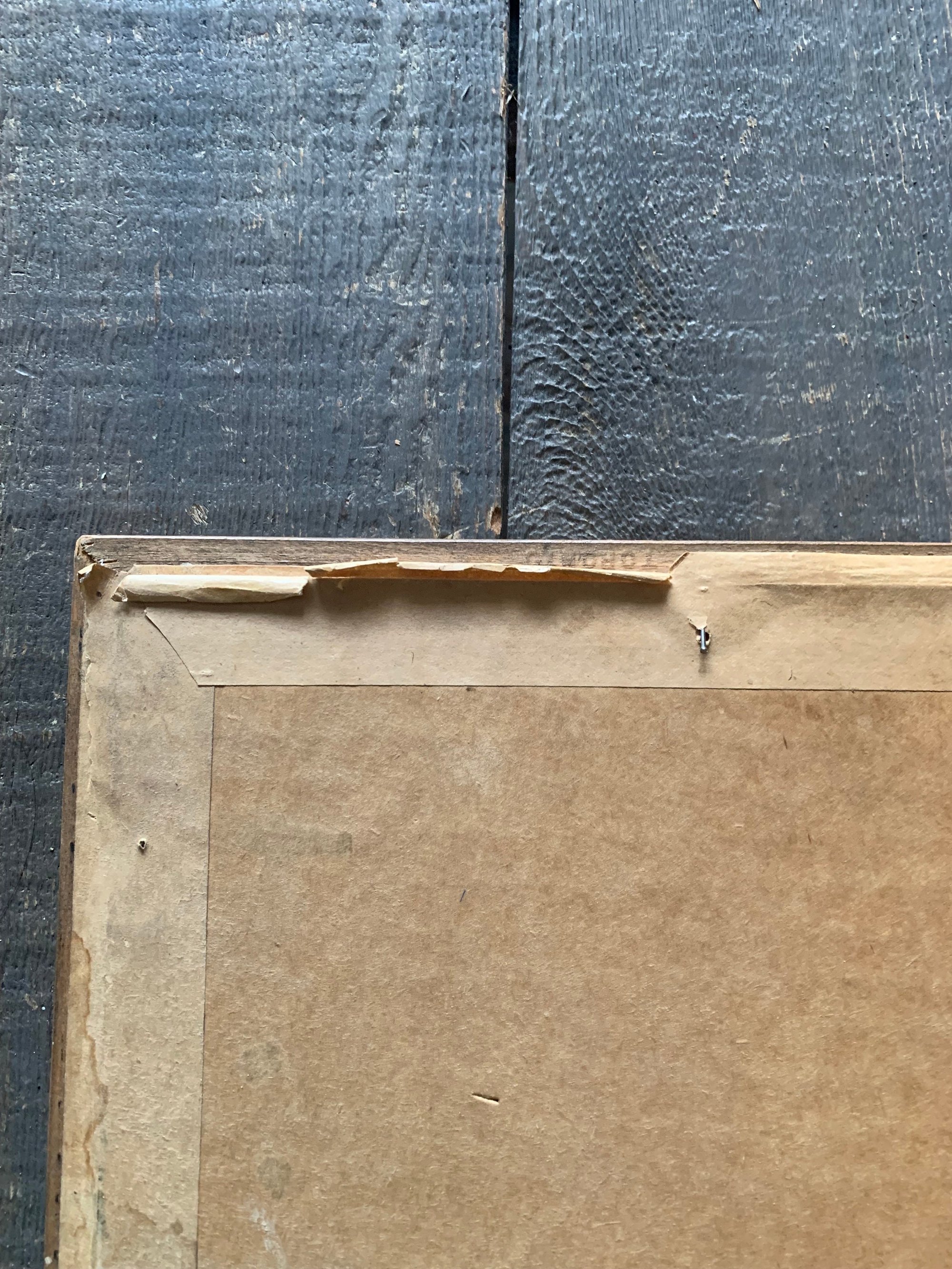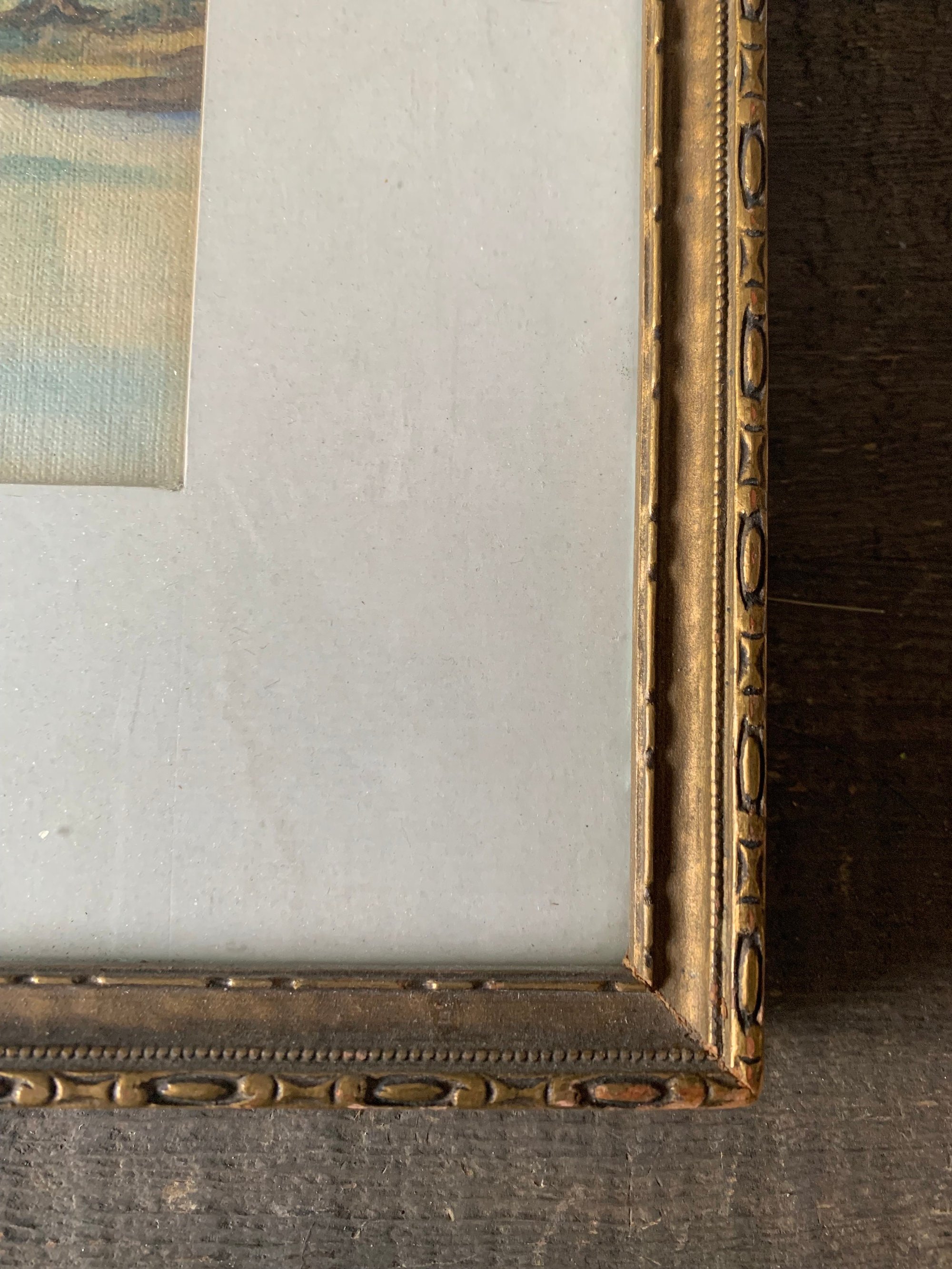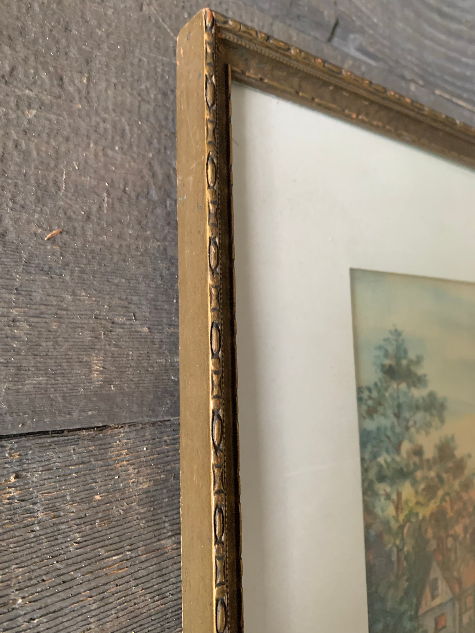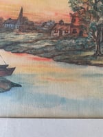 This framed painting is signed by the artist on the back of the picture as well as dated - 1938. The frame and painting are in very good vintage shape. The frame is sturdy and strong. The wood has a lovely old patina. The colouring on the painting is still strong even though this is older.