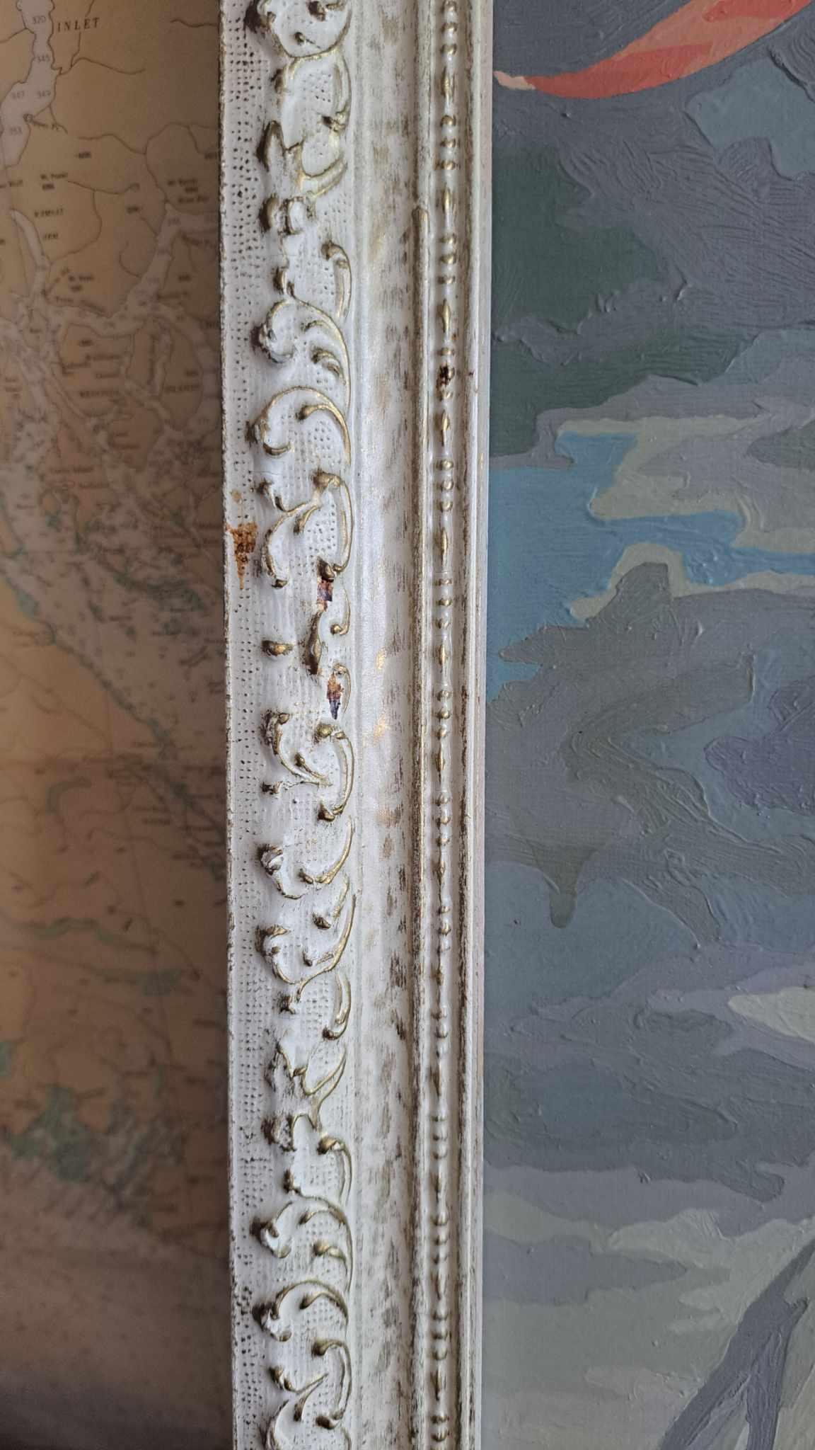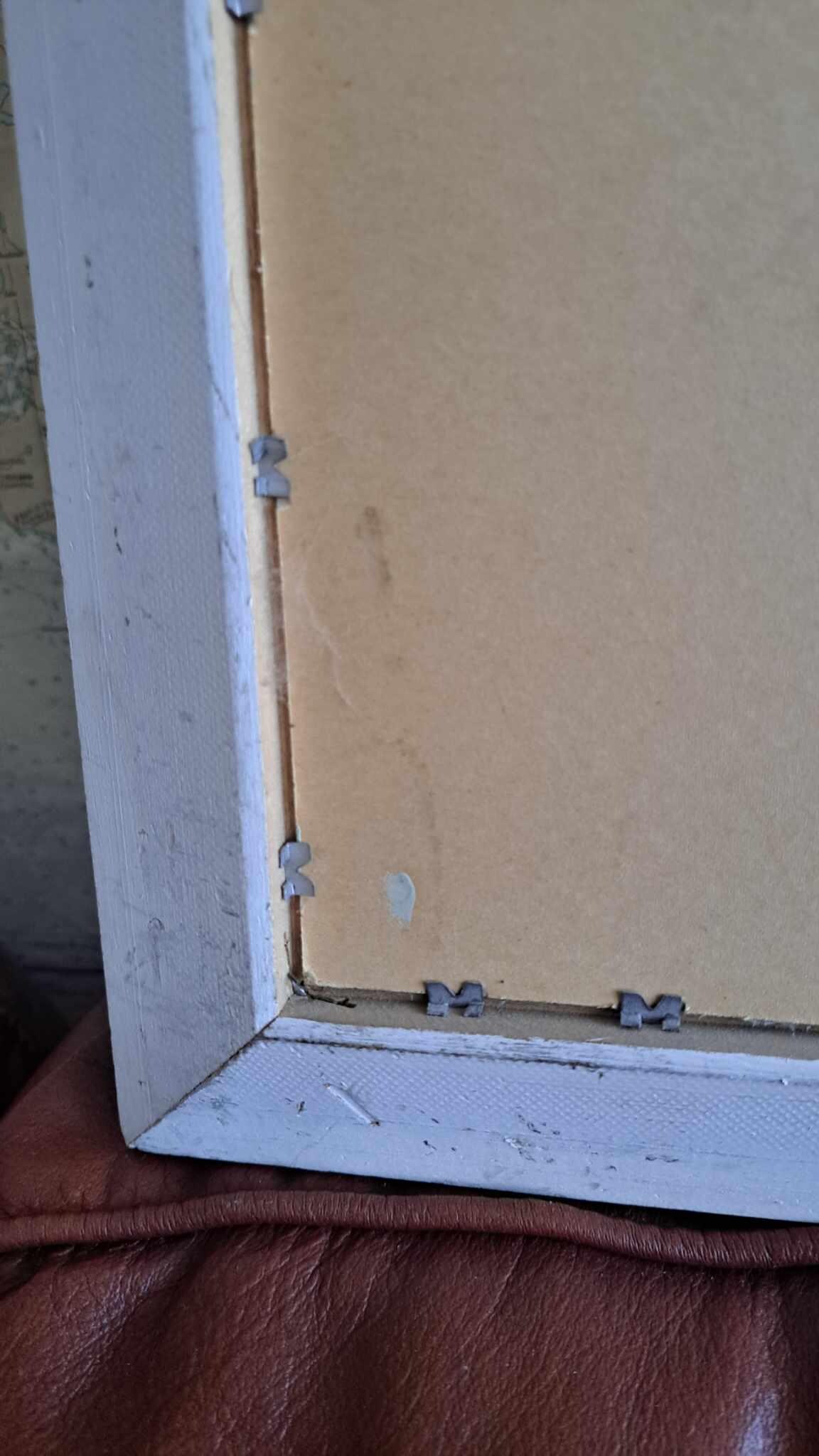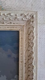 This vintage frame is in very good shape. The pretty detail on the wood gives the frame great character. There is a small stain(?) on the left side of the frame; though it is hard to see (See pictures).