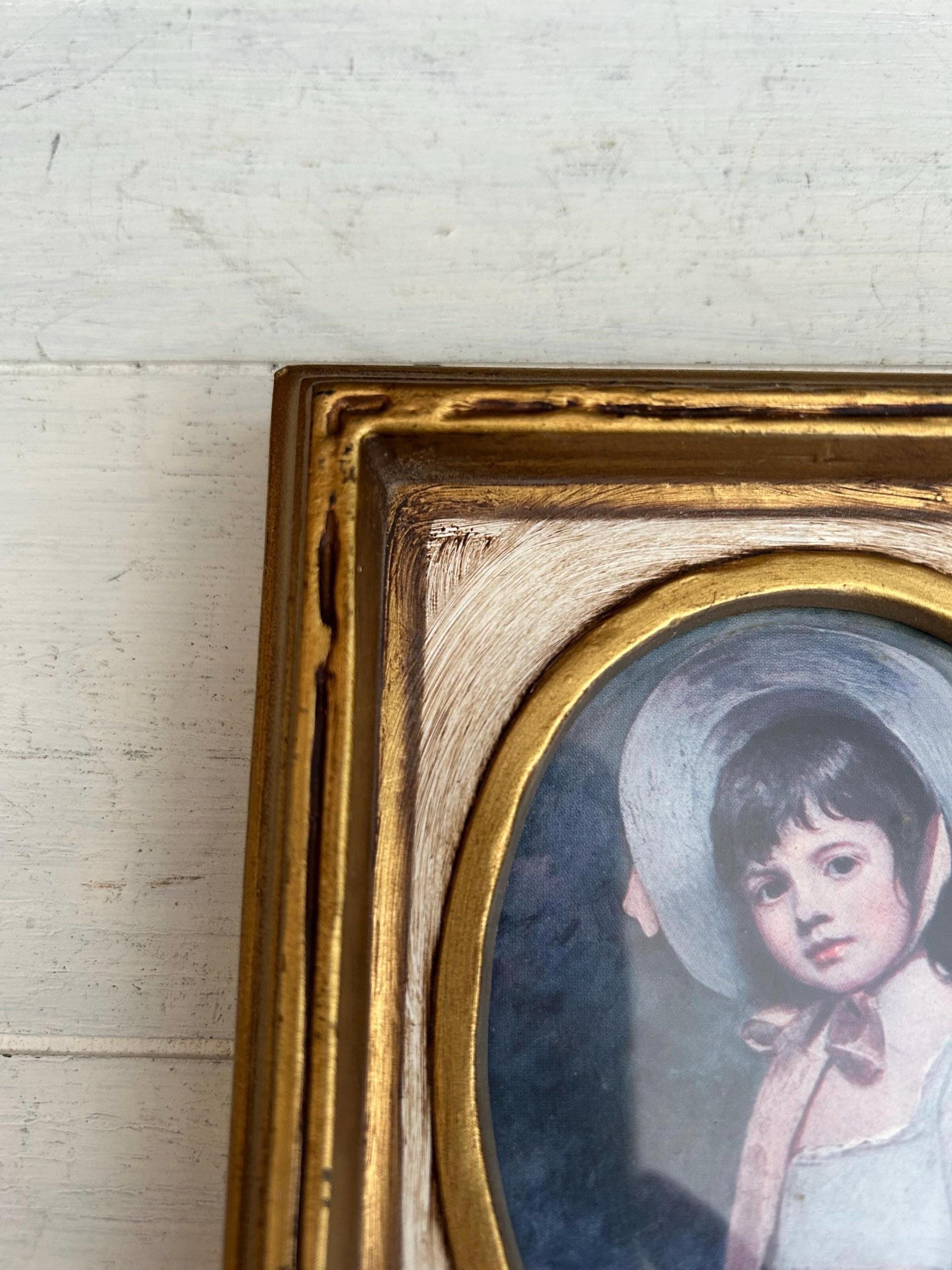 Framed Print, Girl with Bonnet, 1970s Plastic Frame