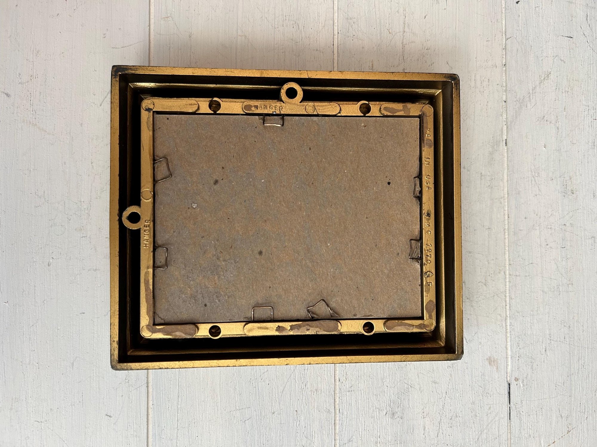 This framed print is in very good vintage condition. The colouring on the print is still strong. The frame itself is sturdy and strong. There is glass in this frame. The frame is plastic and molded in the US in 1970 as the stamp on the back shows, in order to hand it you need to use the plastic hook on the back on simply lean it.