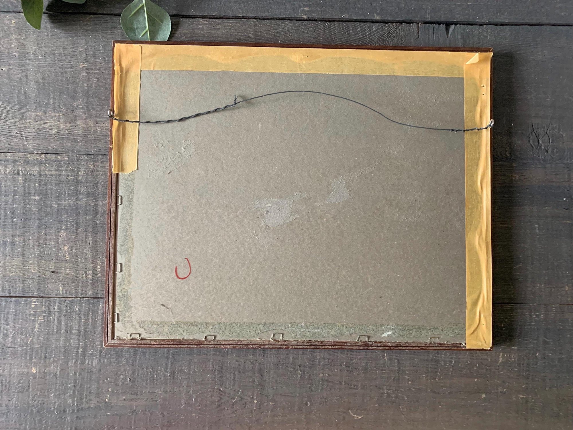 This vintage print is in great condition for its age and the colour is still vibrant. There is wear and tear on the frame for its age, but the frame is still strong and sturdy. The green mat does have a slight buckle in the paper (It can be seen slightly in the first photo) again due to age, however the print itself is in great shape.