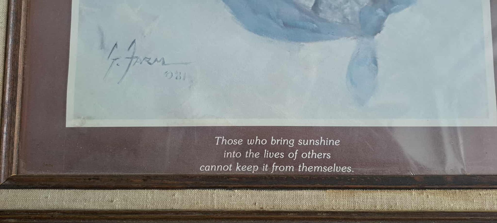 This Gerald Farm print is in mint condition- still sealed in plastic, though there is a minor rip in the plastic. The frame itself is in good vintage condition, though there are a few marks on it (see pictures).