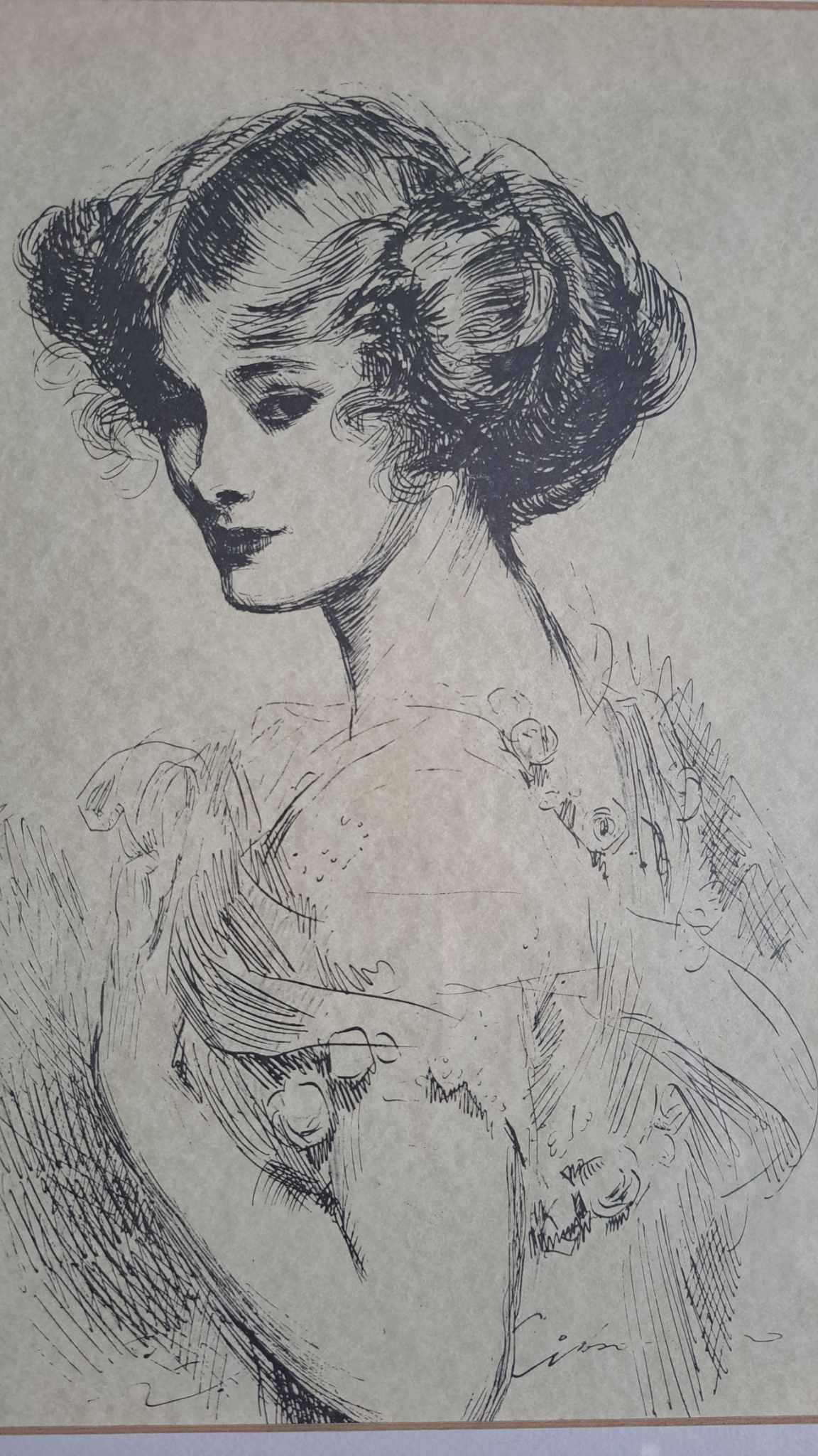There is a sister piece that can be found, here: https://www.etsy.com/ca/listing/1877083397/vintage-gibson-girl-print-etching-size