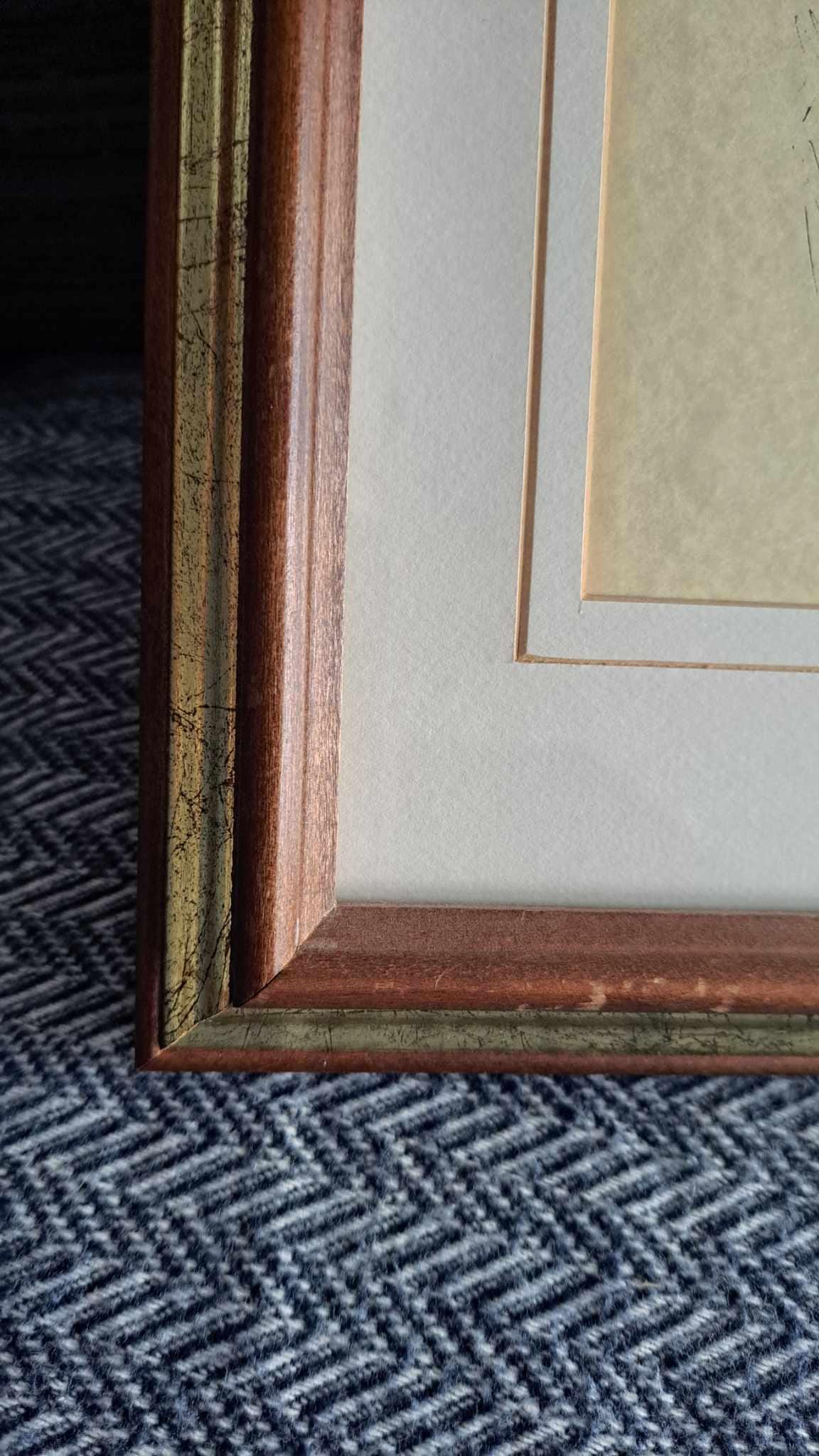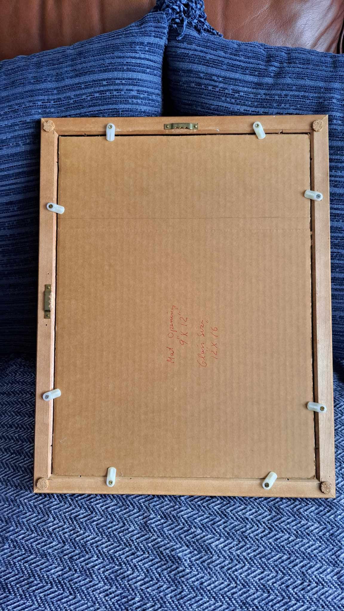 This vintage Gibson Girl lithograph is in good condition. The frame is sturdy and strong. There are a few small marks around the edge of the frame (see pics). This print was done by Grey Cloud Graphics in 1987 of a 1909 etching.