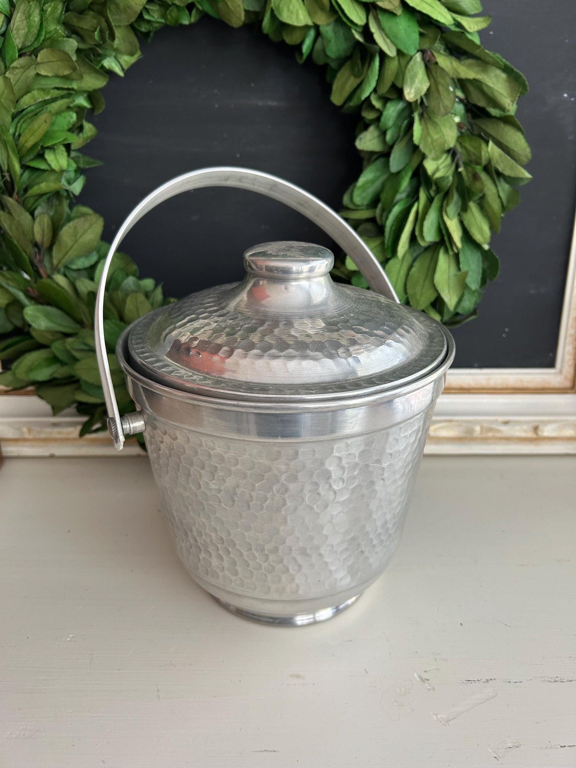 Hammered Aluminum Ice Bucket, MCM Barware, Made in Italy