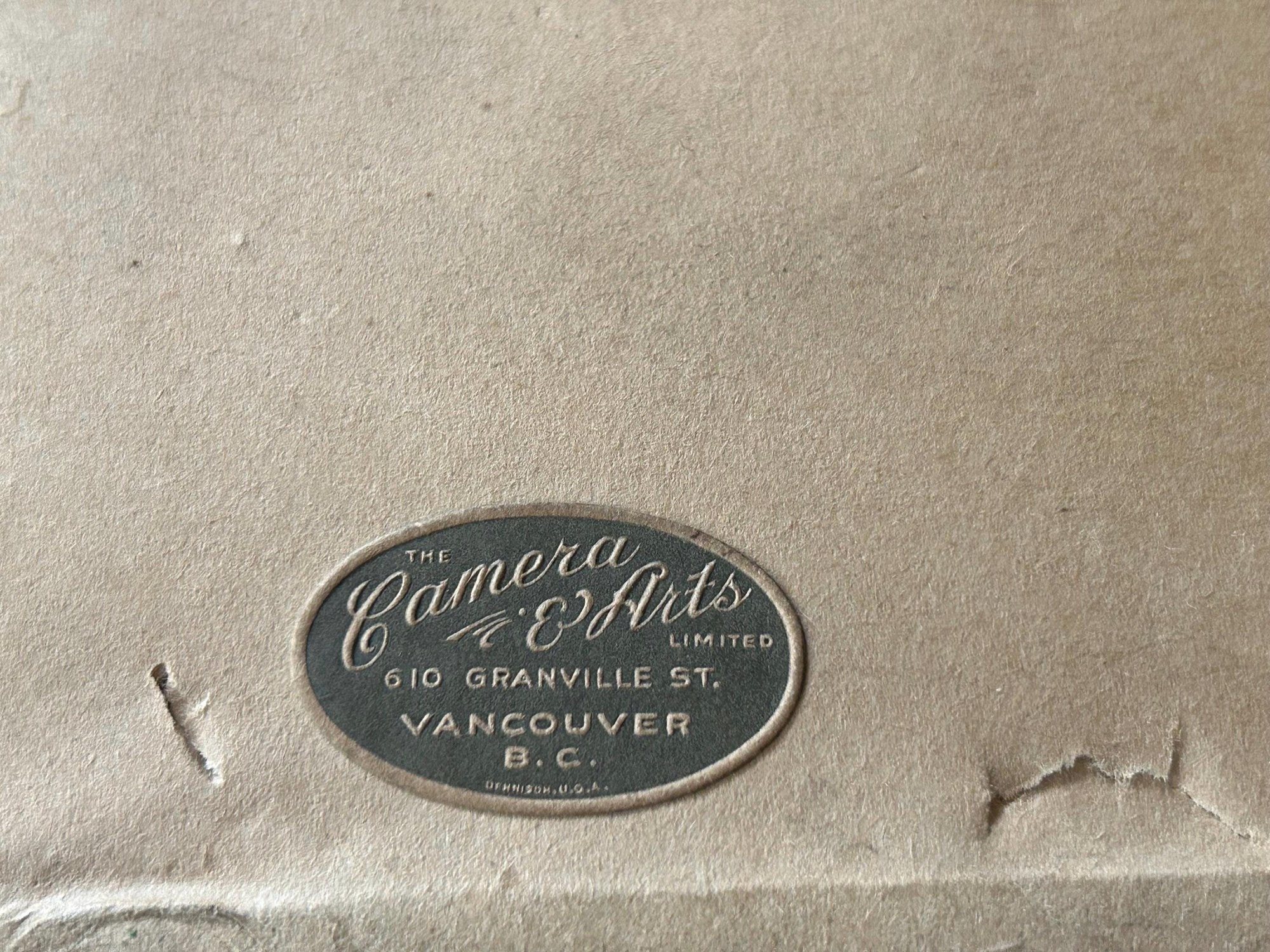IT has a stamp on the back that says 'Camera & Arts Vancouver BC' There are 2 original hooks on either side of the frame for string or wire to hang. Wire will be added.