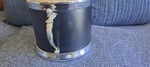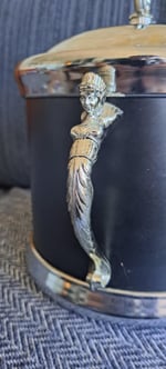 This Japanese ice bucket is metal and plastic. In good vintage condition. The side shows small amounts of wear from age (see pictures). The plastic liner is in great shape and the handle works well.