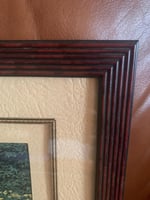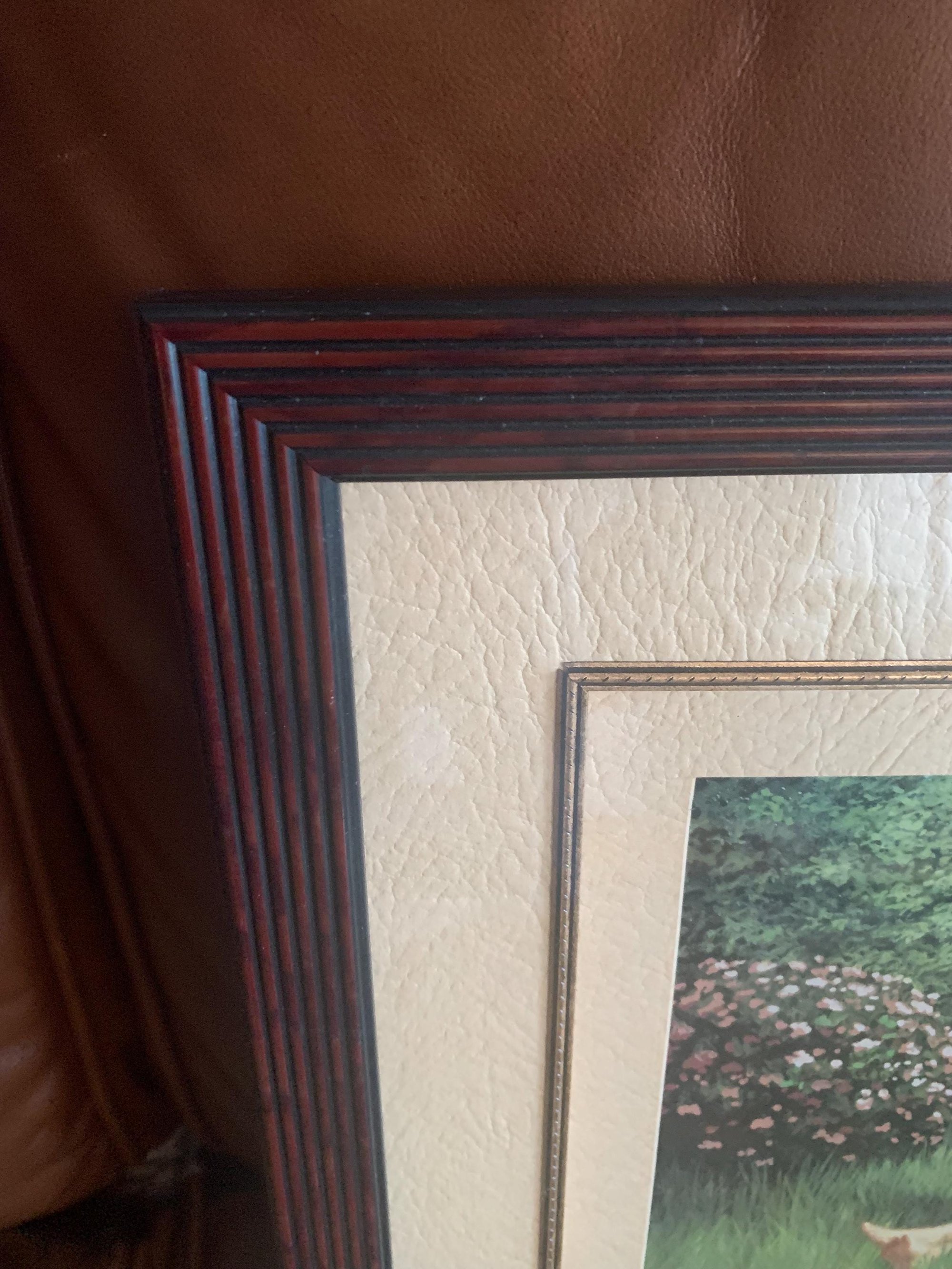 This vintage Mary G. Smith print is in excellent condition. There are no signs of fading in the colours, no stains, the mat is in great condition, and the frame has no marks, scratches or chips on it.