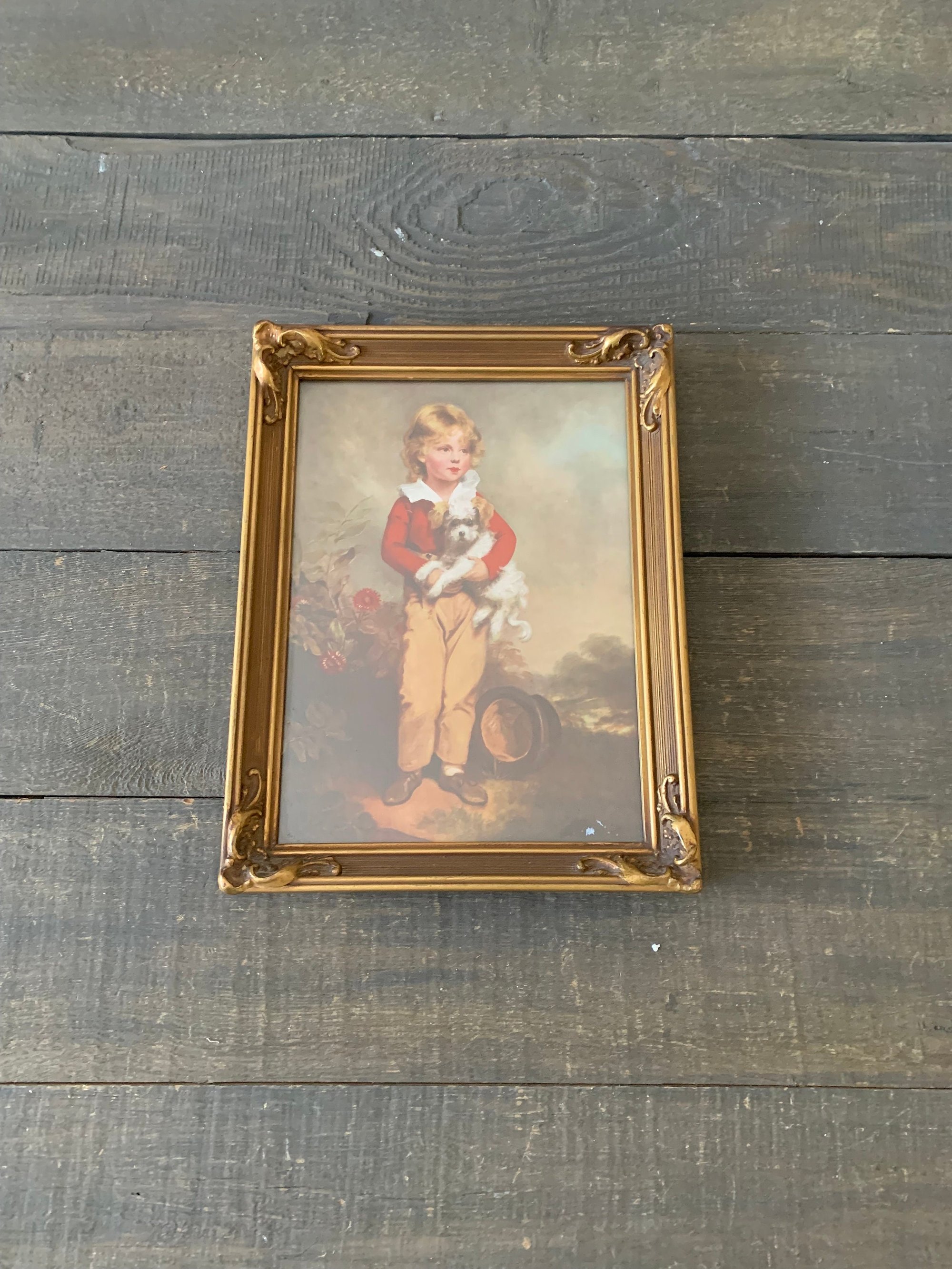 A lovely example of vintage art. The frame is in very good condition, the ornate corners give such pretty detail. This print of master Simpson is by Arthur William Devis (1762-1822) who was an English artist. The frame is strong and sturdy.