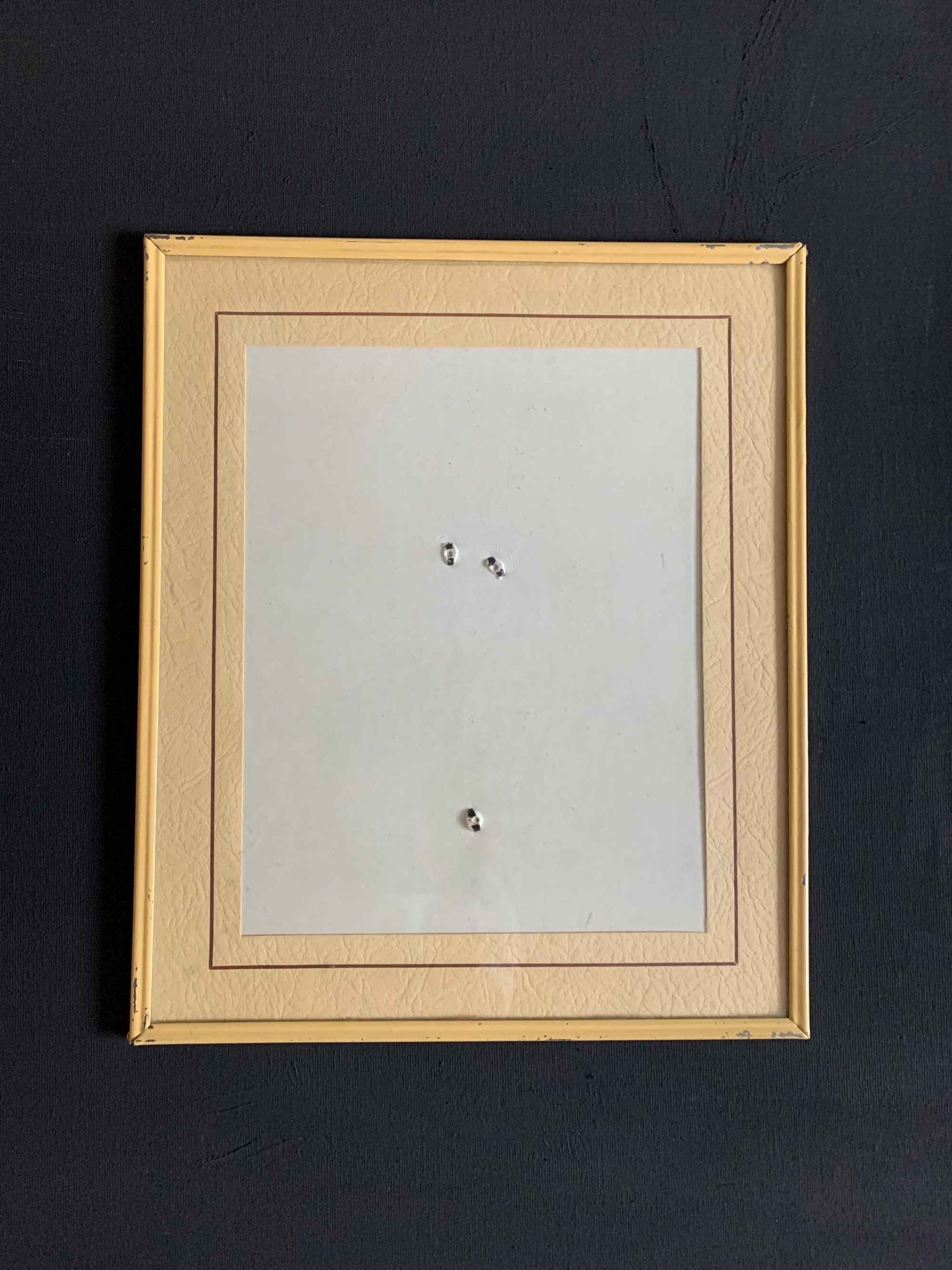 These unique metal frames have great style to them. They are identical with the exception that 1 frame has no mat, there was a stain on the paper of 1 of the frames mats which was dark and noticeable so it has been removed