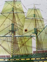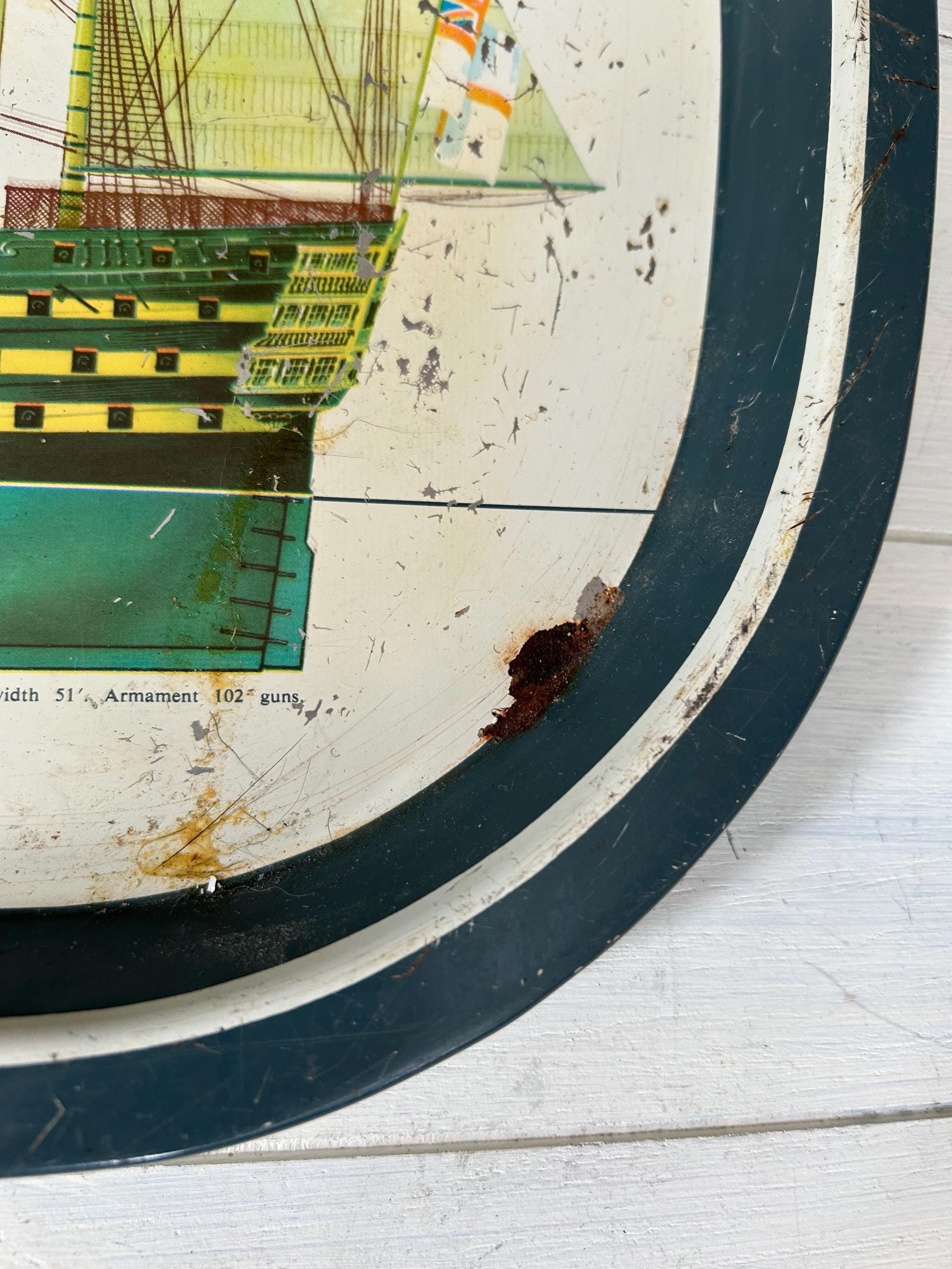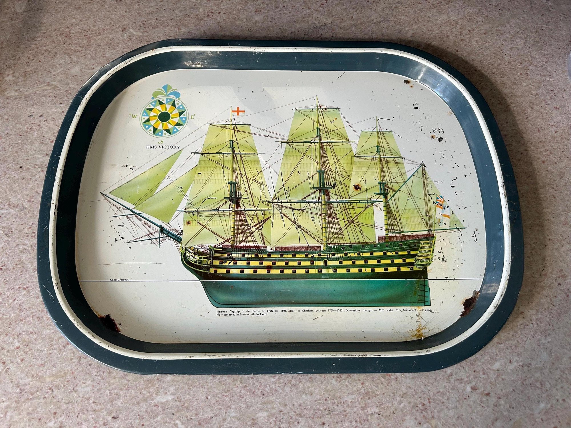 The picture of the ship is 'Nelson's Flagship' in the Battle of Trafalgar. Stands sturdy on a tabletop.