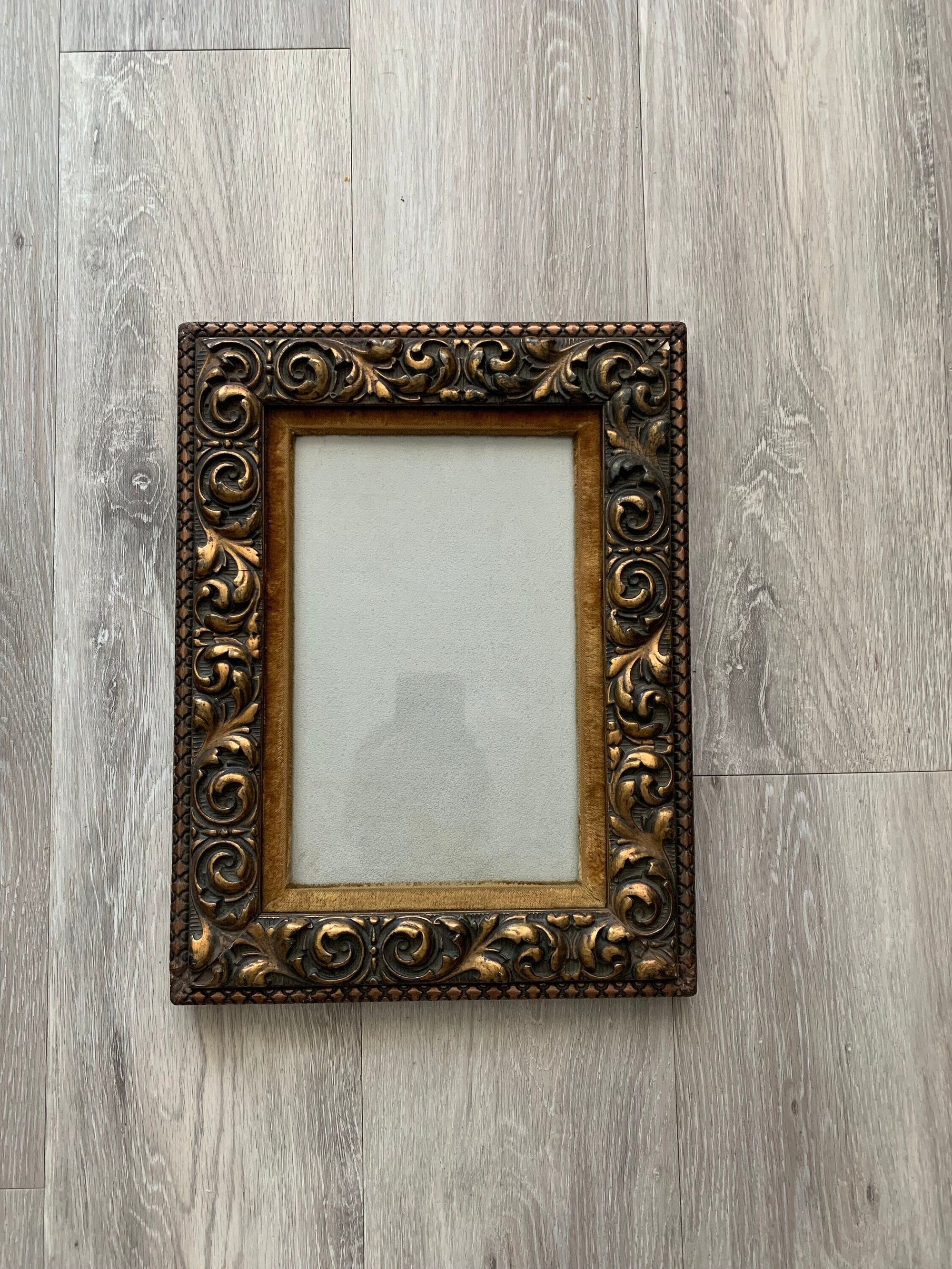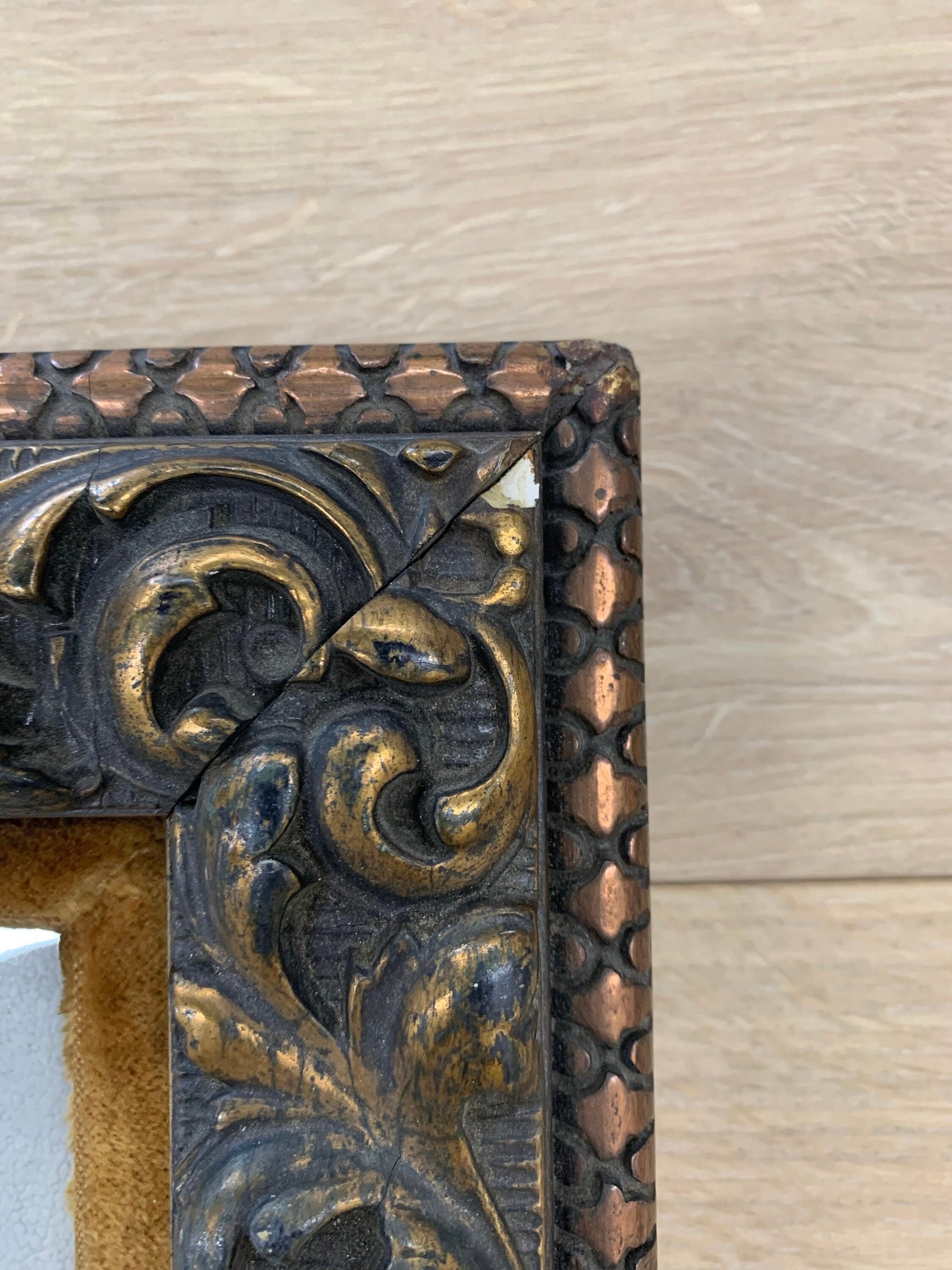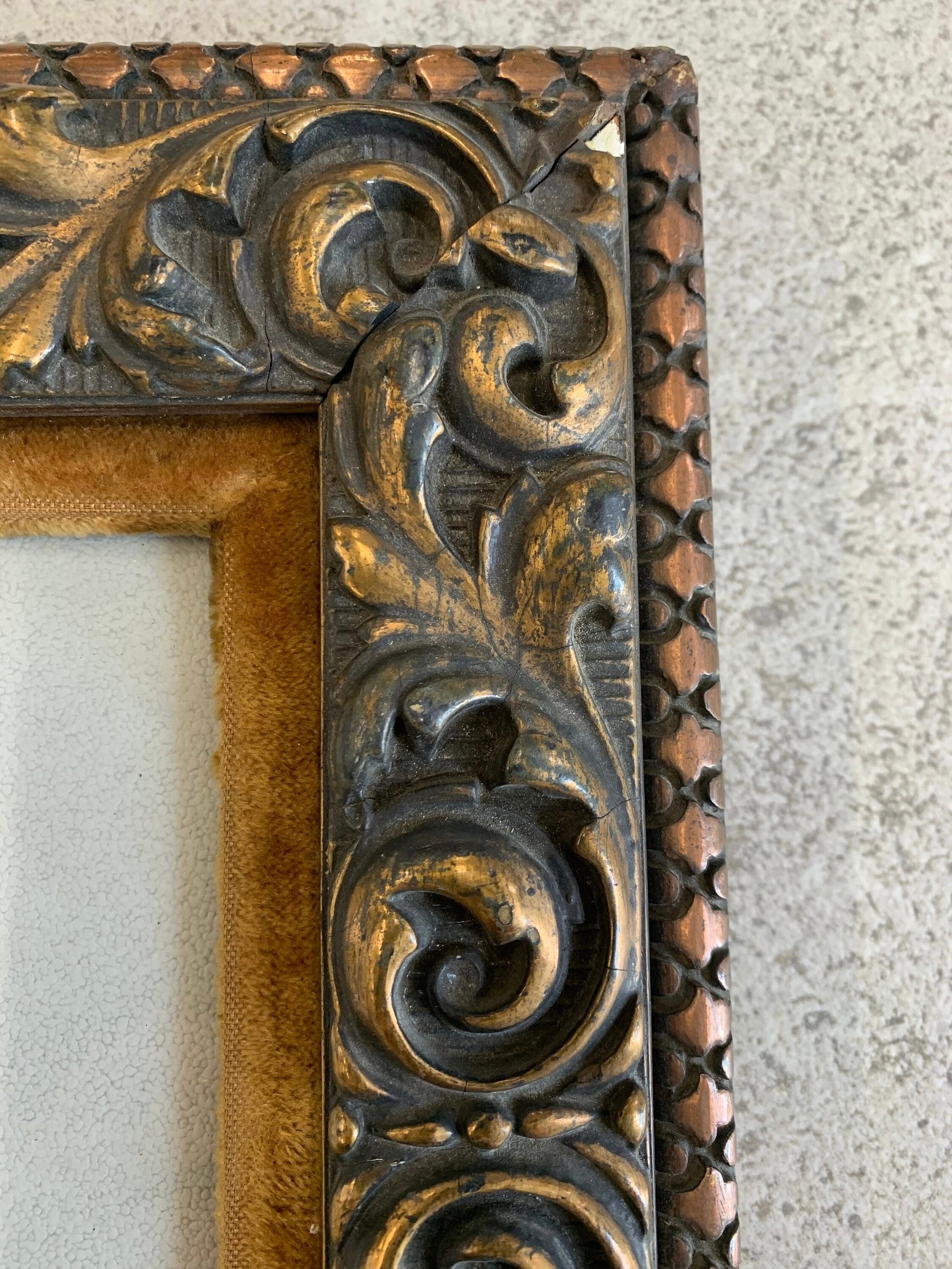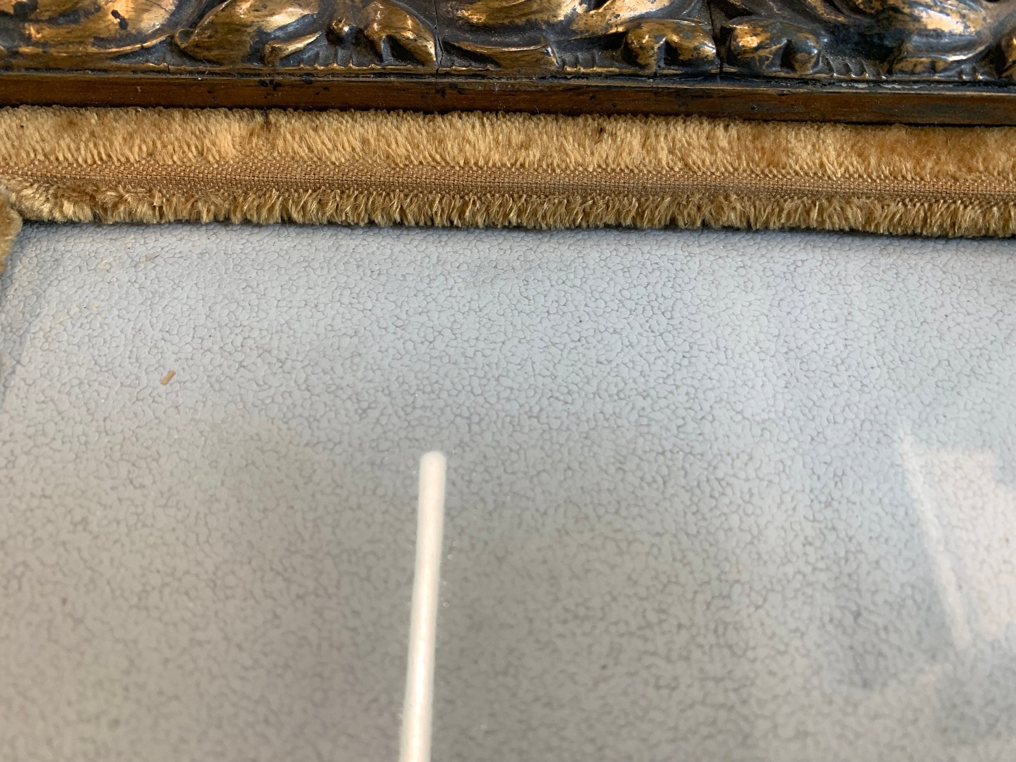 The velvet on the inset of the front of the frame is still in great shape as well. Glass included and no wire is currently attached for hanging but this will be added. This is currently set to hang vertically