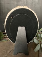 This ornate picture frame is in very good condition. It does not appear to be very old as some of my frames are however the finish gives it an aged look. It has a strong stand and does not wobble. The off white colour is accented by a slight hint of gold and brown patina, gives it a great look.