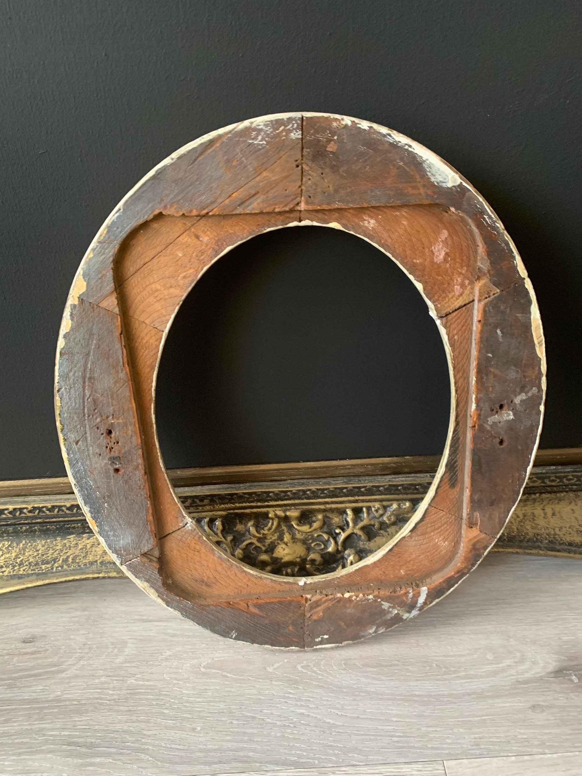There is 1 crack in the plain frame otherwise in good shape. There is NO backing, hooks or Glass however backing can be added please ask.