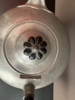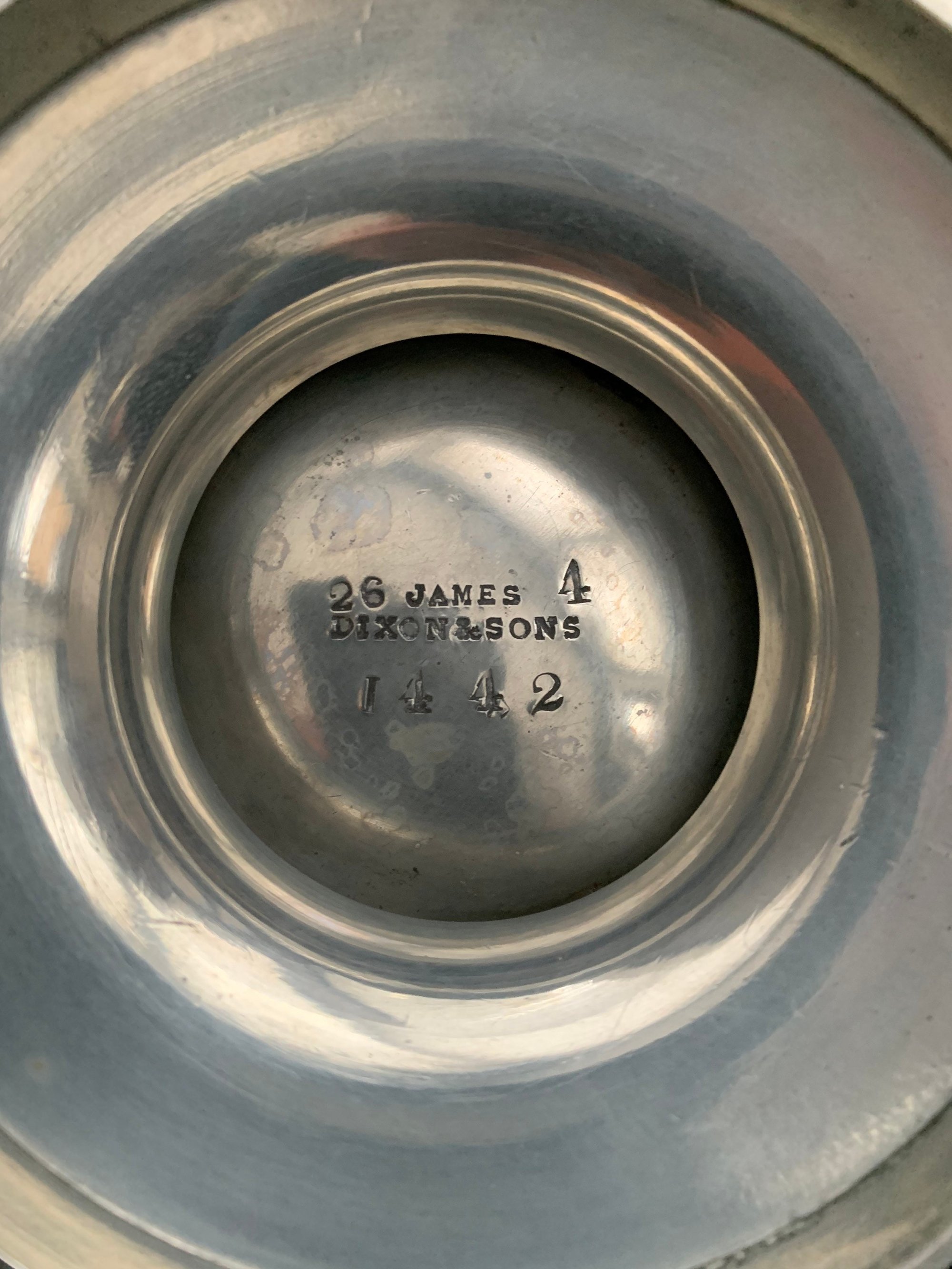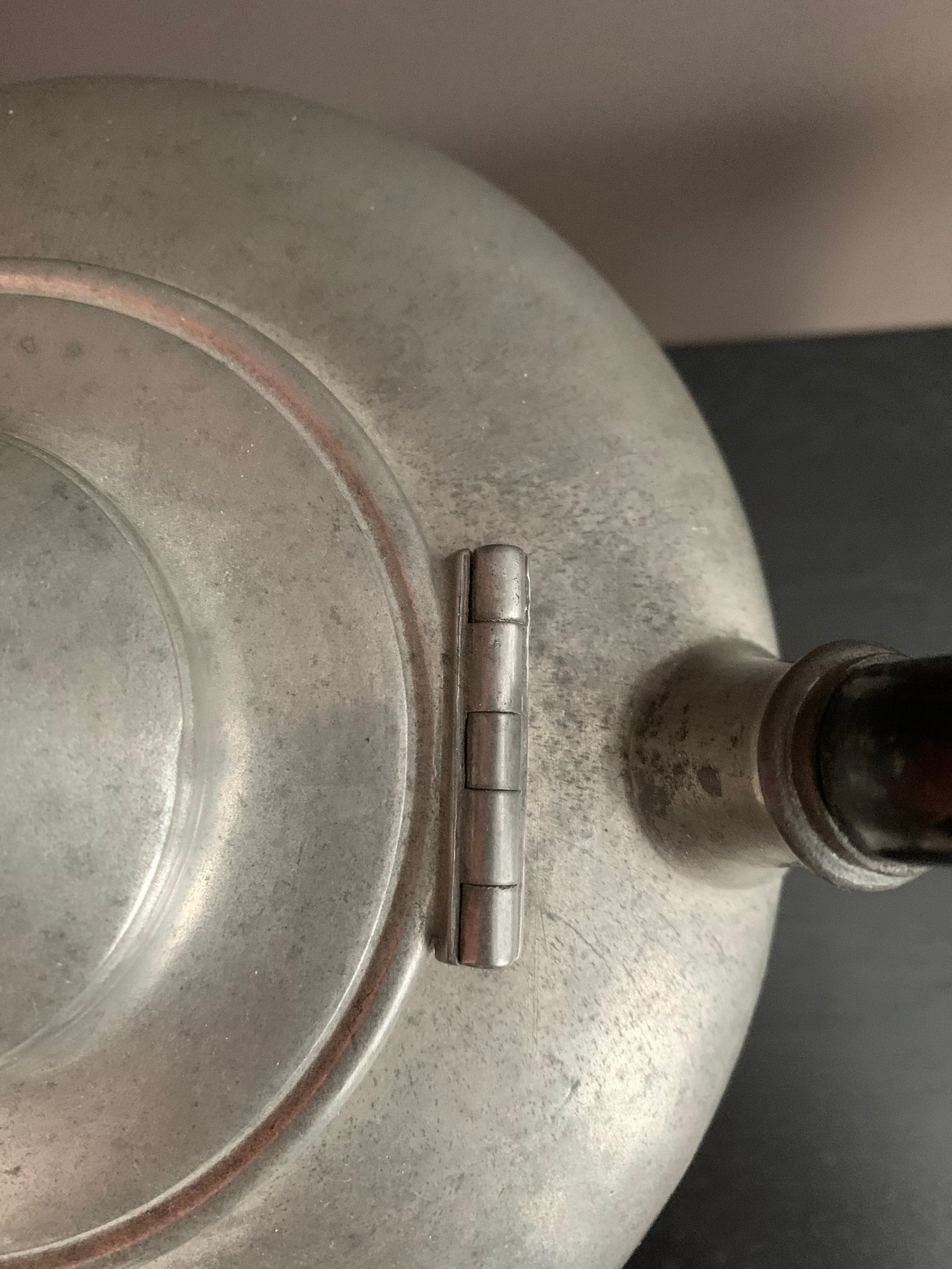 This pewter James Dixon & Sons teapot with its wood handle is in excellent condition. Its lid and hinge work perfectly and no dents or scratches that I can see. The pewter has aged beautifully with a gorgeous patina. Can be used for so many purposes including for flowers or a container for non food items.