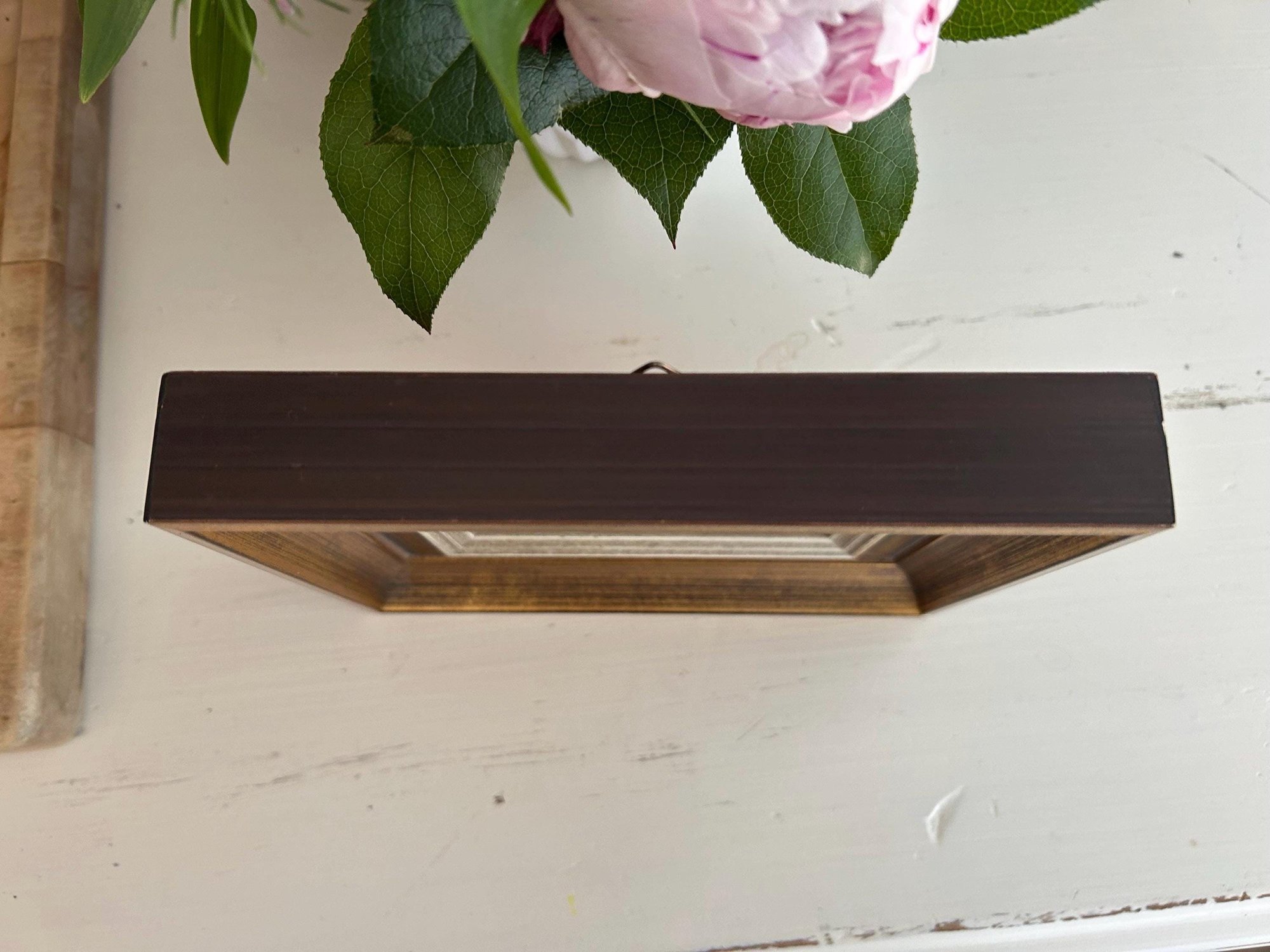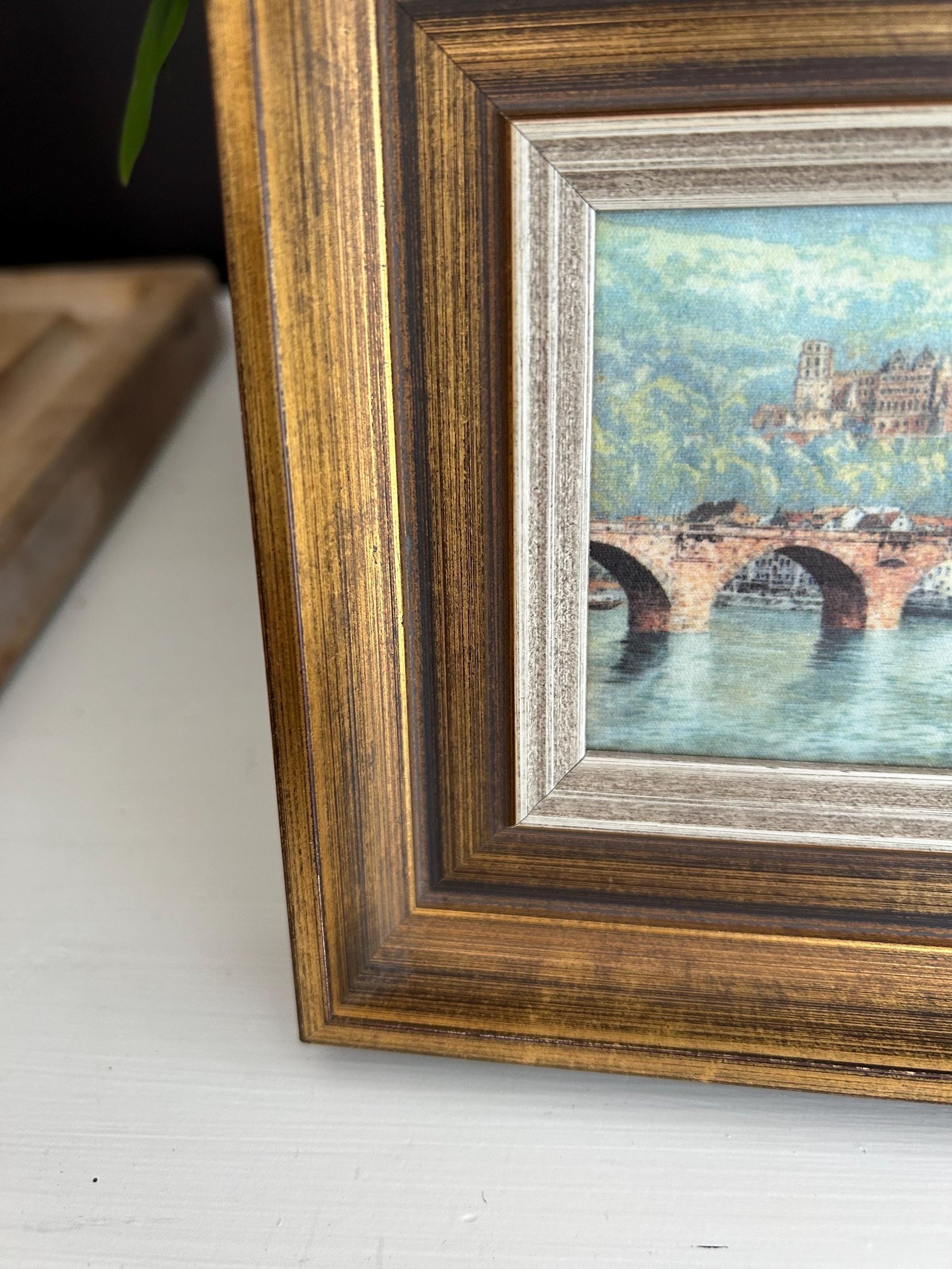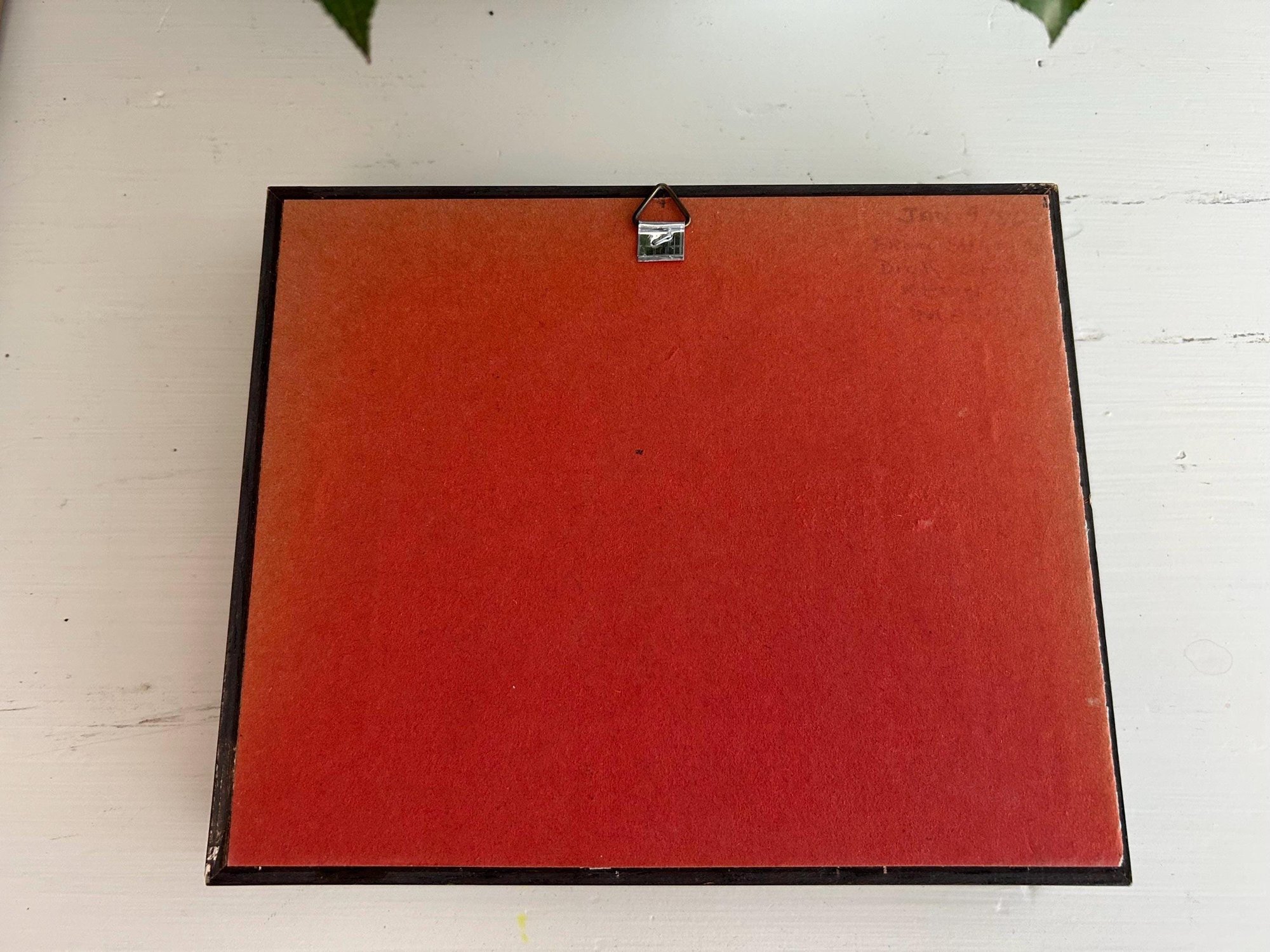 This framed print is in very good vintage condition. The print colouring is still good and the frame is sturdy and firm, shows no sign of chipping or cracking. The original backing is still attached.