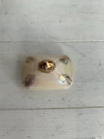 This vintage bone china sugar bowl has some unique details. The patina that is starting is very unique.