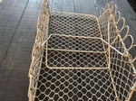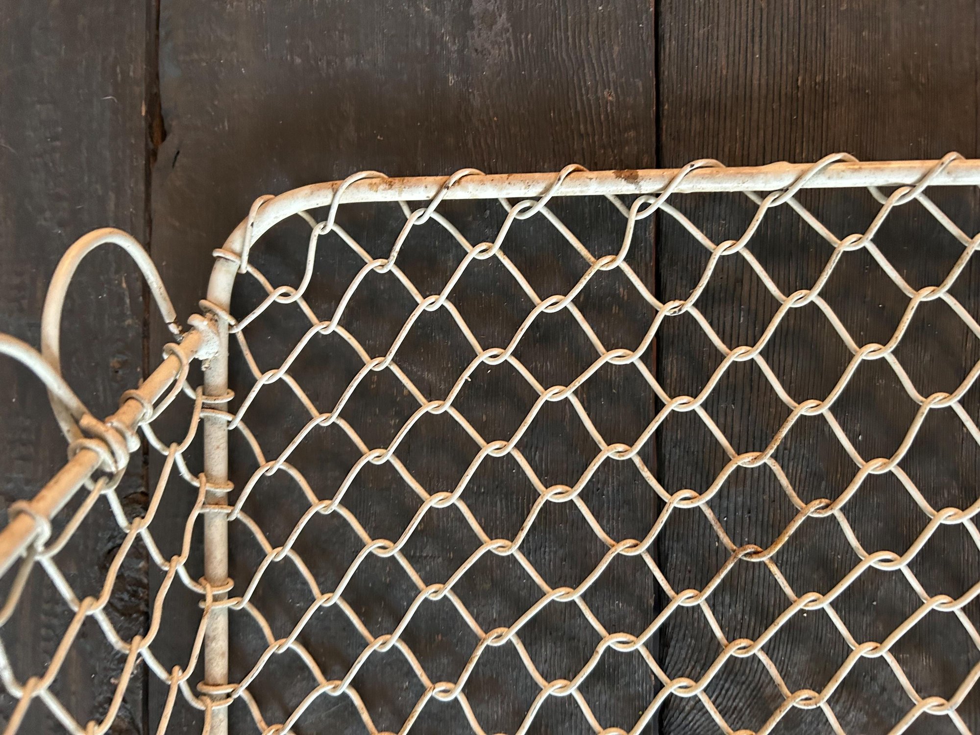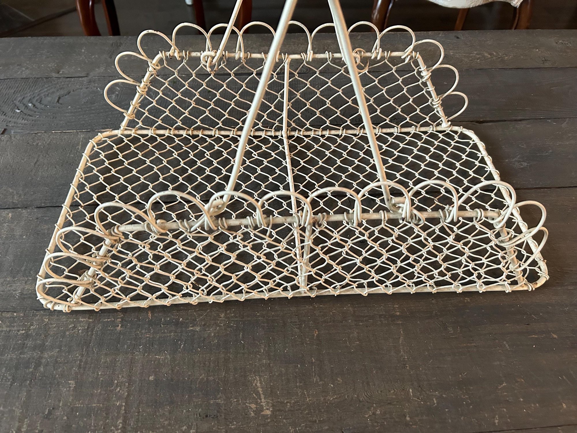 This wire basket is quite unique, the scroll work is very detailed. It is perfect for a holding towels, wood, magazines or books. Use in a laundry room to hold items, it gives great character wherever you put it. Handles work great. No breaks anywhere in the wire that I can see however the wire does show its age with some chipping of paint and stains, great patina!