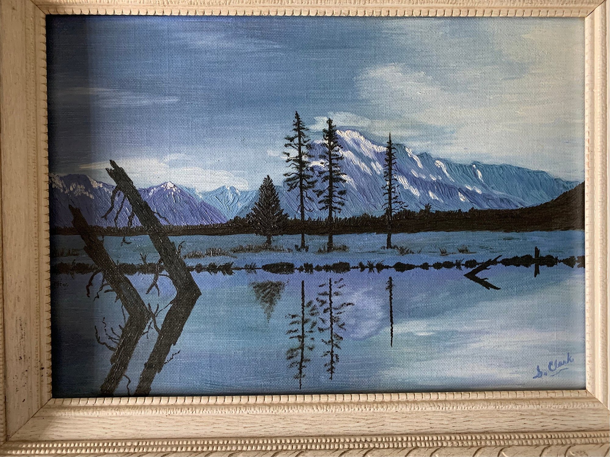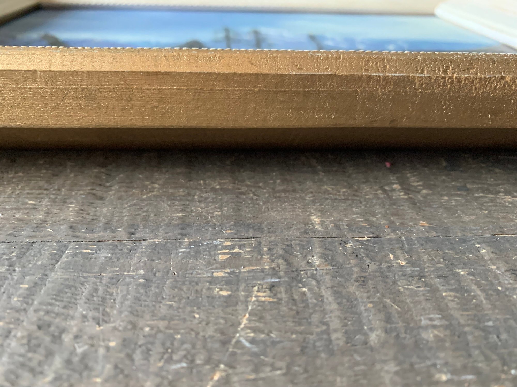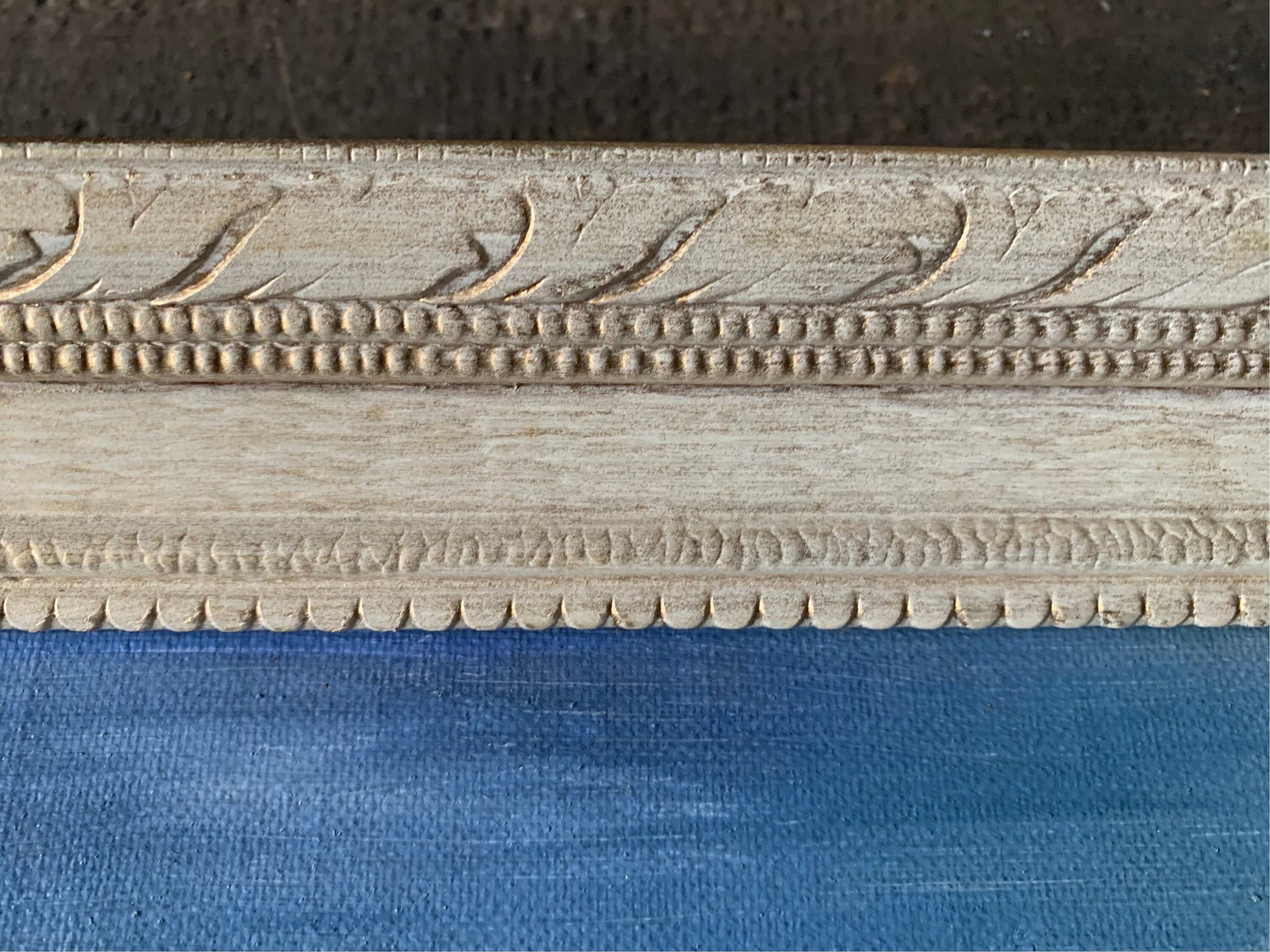 Vintage wood frame and painting has been preserved in its original condition. This frame is vintage, it is very strong and sturdy. Original picture still inside and it is signed on the front and dated on the back. NO Glass is included. The original art appears to be an oil painting. The backing has been adapted using tape and I have left it as it is for authenticity. There is no hook in the pictures however one will be added.