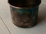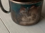 The patina on this silver plate childs cup is quite striking. It is etched back and front with what appears to be Little Bo-Peep with a staff. The wear and tear is consistent with its age.