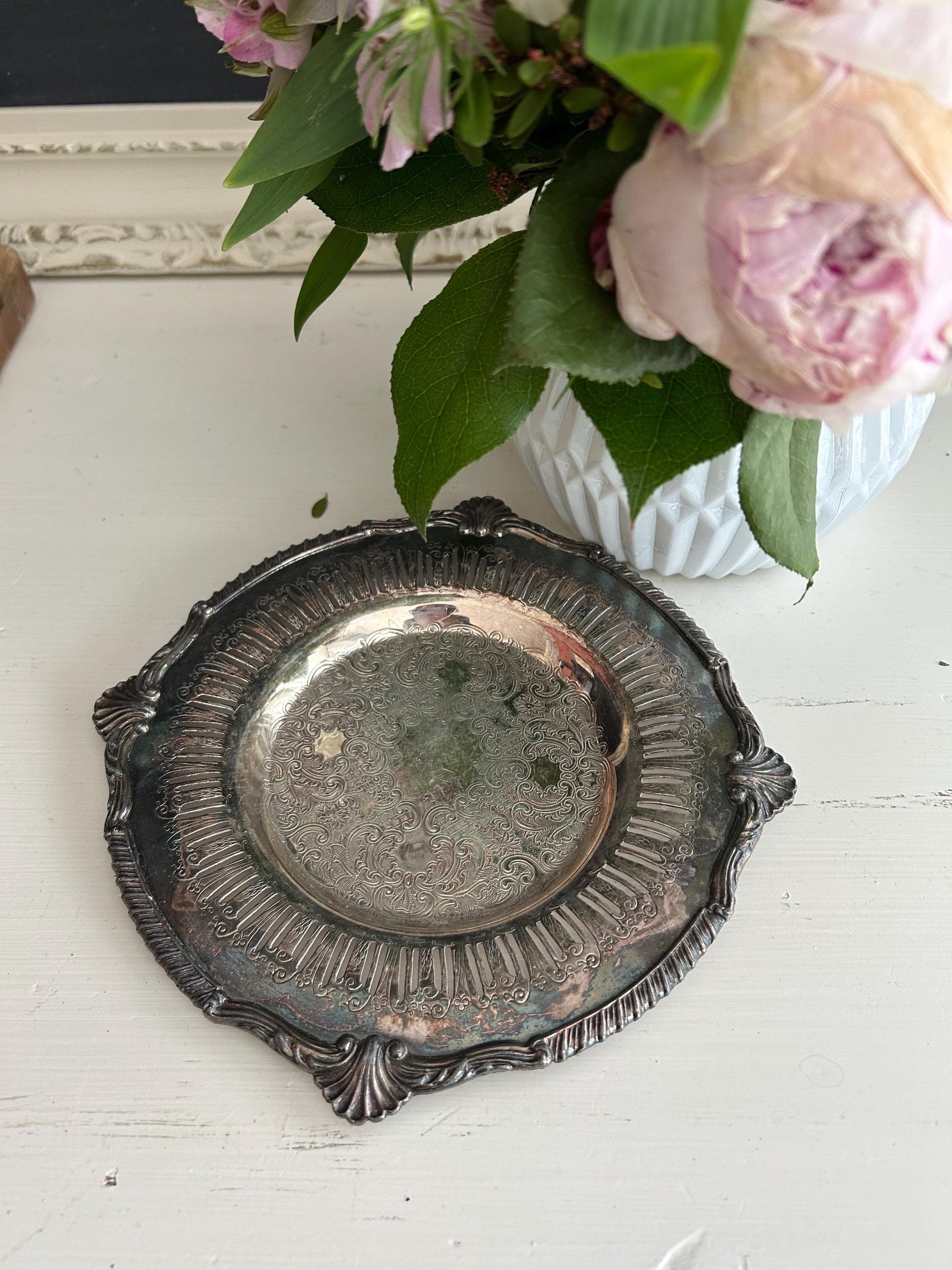 Silver Plated Tray, Etched Barware, Trinket Dish