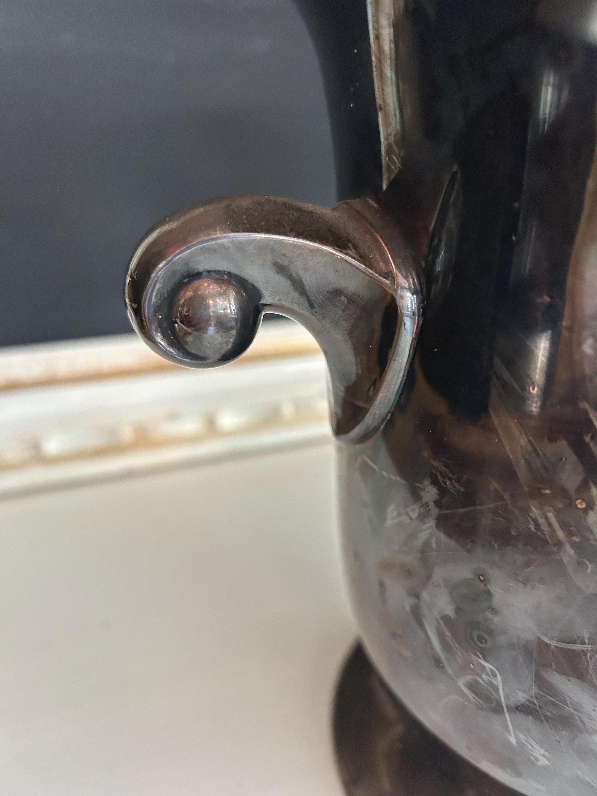 This vintage sliver urn has the beginnings of a great patina. This could be polished but it has been left as it was found. A classic design. In excellent vintage condition.