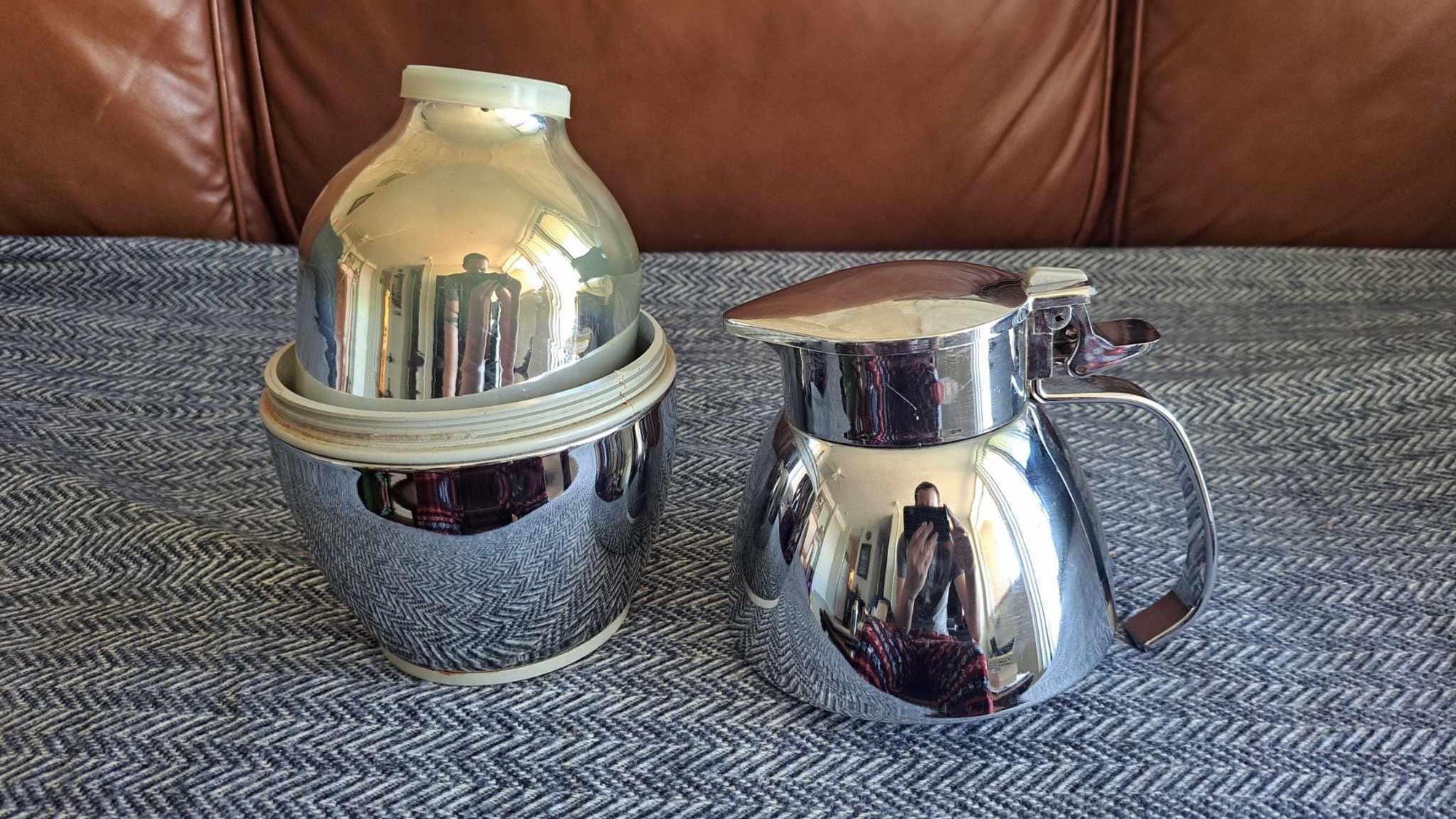 The pitcher stands sturdy on a tabletop. It is in good vintage condition.