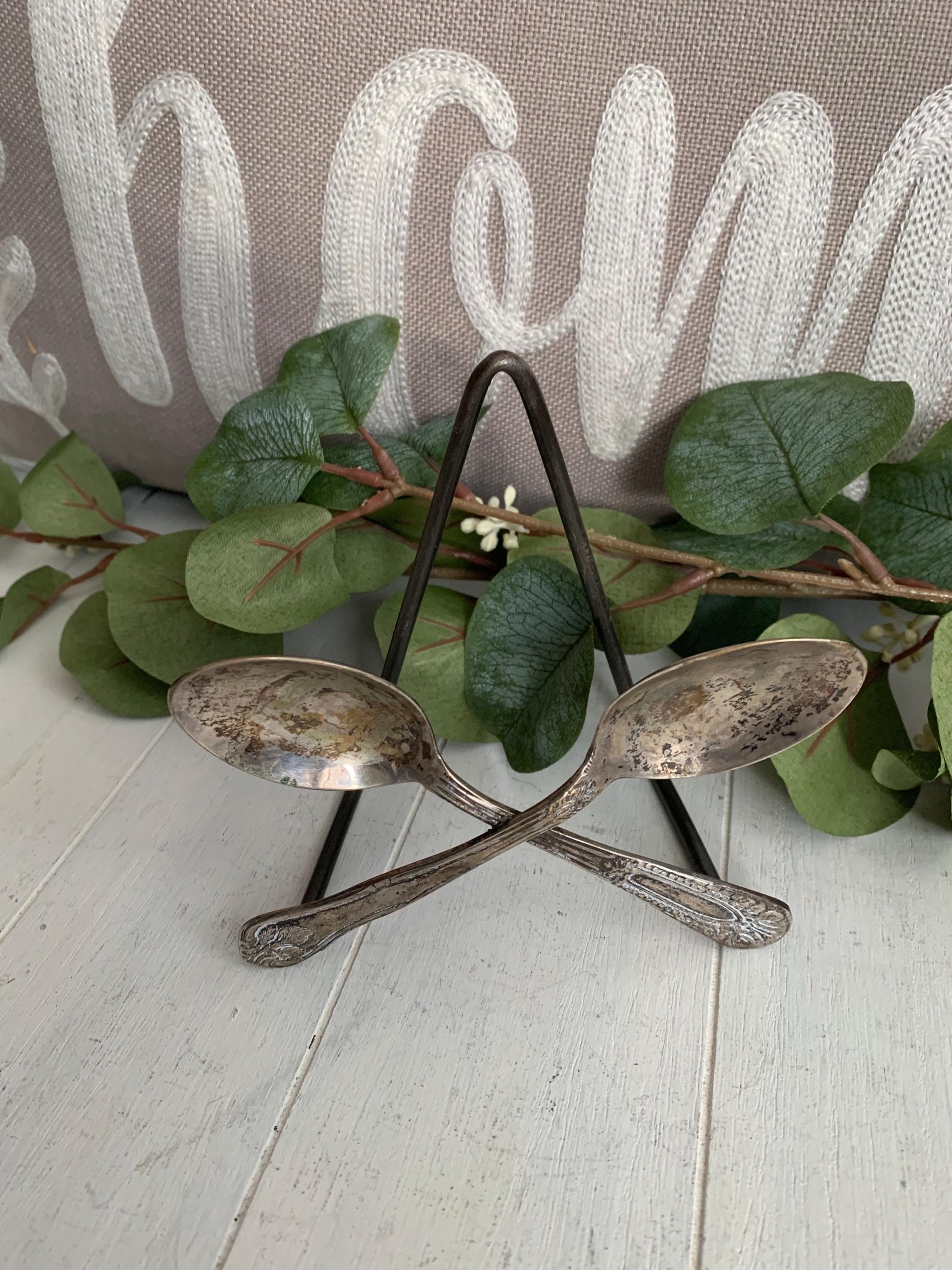 Style Silver Napkin Holder, Rustic Spoon Easel