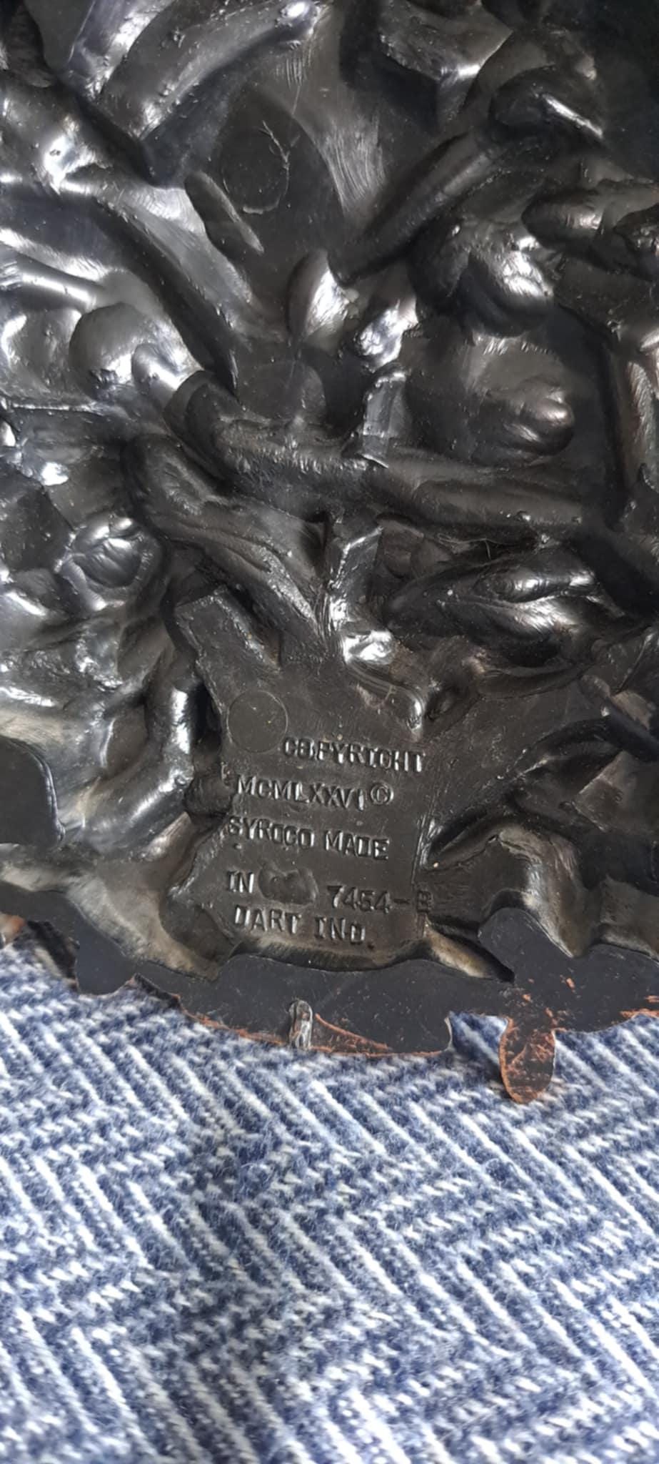 This vintage Syroco wall decor is in excellent condition. No marks, no chipping. Stamped on the back.
