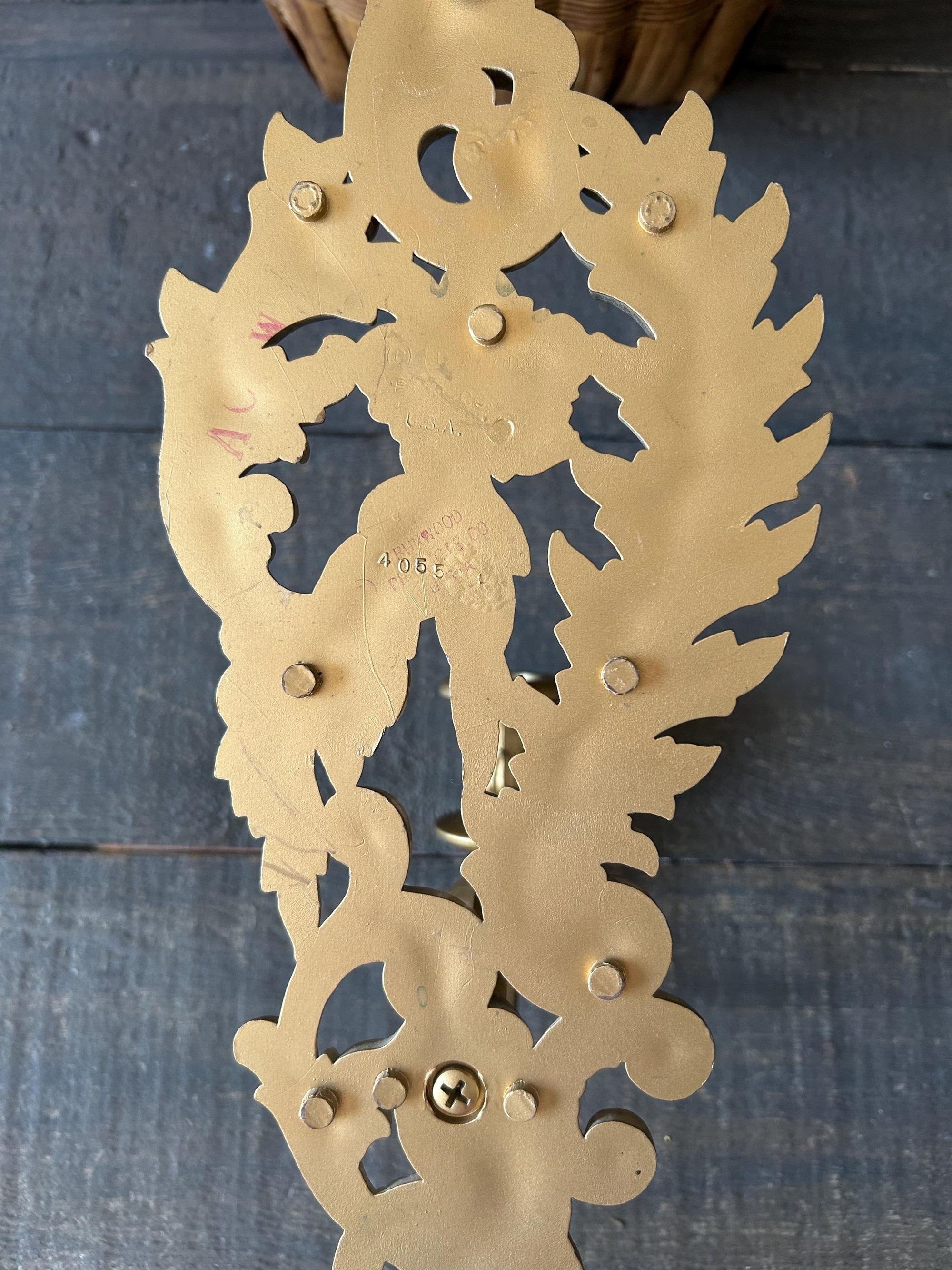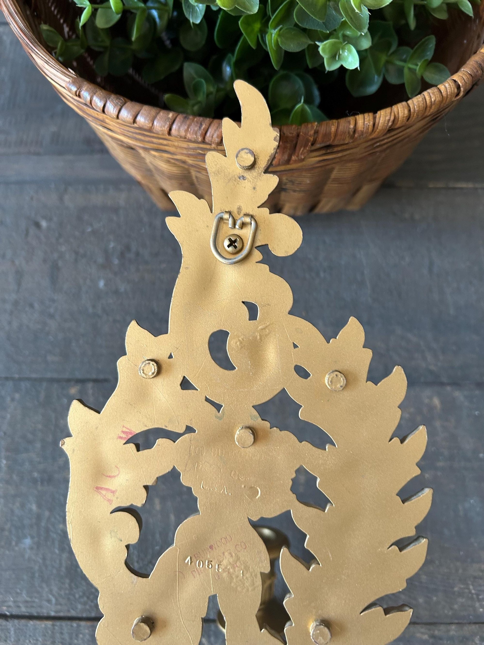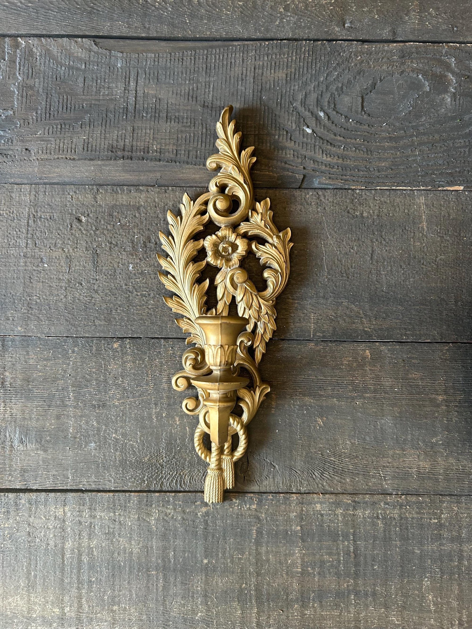This vintage Syroco candleholder is in great vintage condition. It is a single candleholder only. Original hooks to hang still attached. Stamped on the back but very worn so hard to read